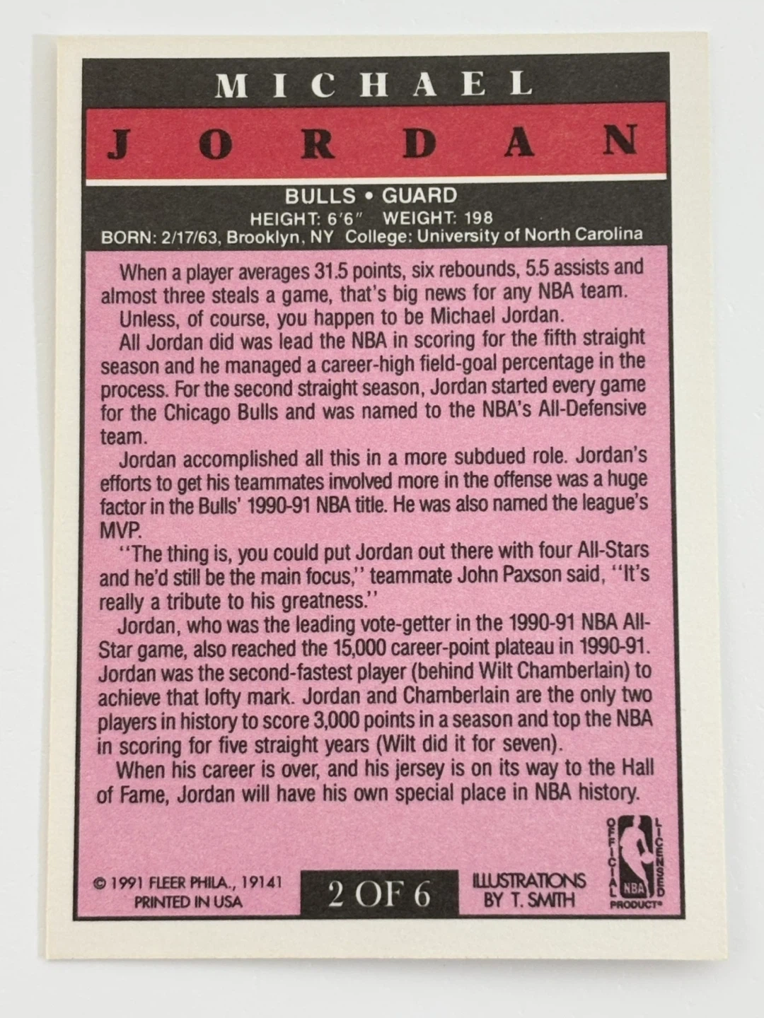 1991 Fleer #2 of 6 card of NBA Basketball Star Michael Jordan (comes with hard case) .