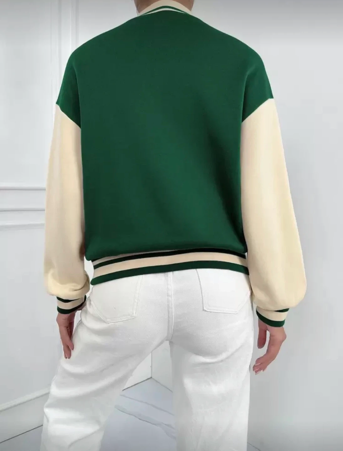 Green & Cream Varsity Bomber Jacket