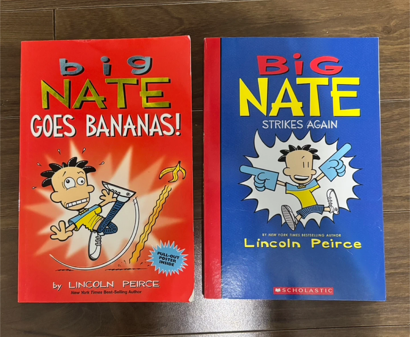 Two Big Nate books by Lincoln Peirce are included: 'Big Nate Goes Bananas!' and 'Big Nate Strikes Again'. Both books are written by a New York Times Best-Selling Author. These are great for young readers who enjoy humour. Scholastic is the publisher.