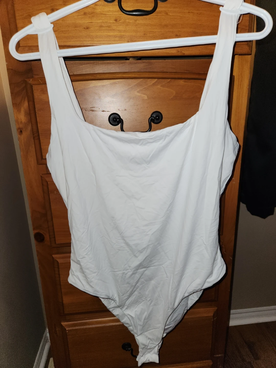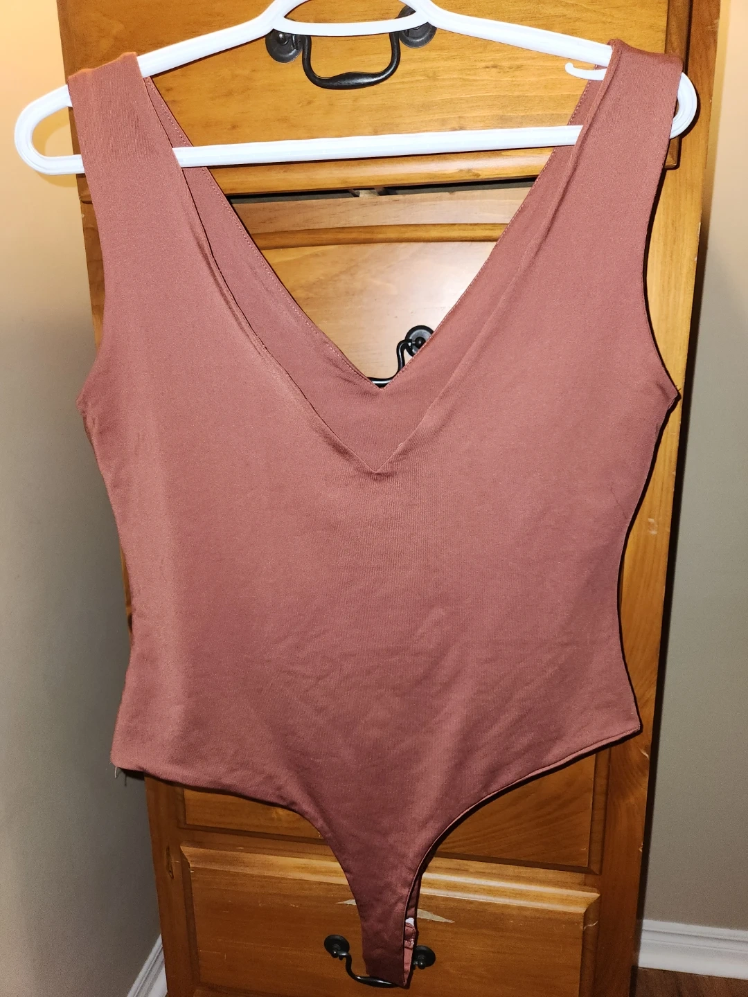 This is a lot of two bodysuits from SHEIN. One is in a rose mauve colour and the other is white. Both are size Large and made of a stretchy material. They feature a V-neck and square neck design respectively.