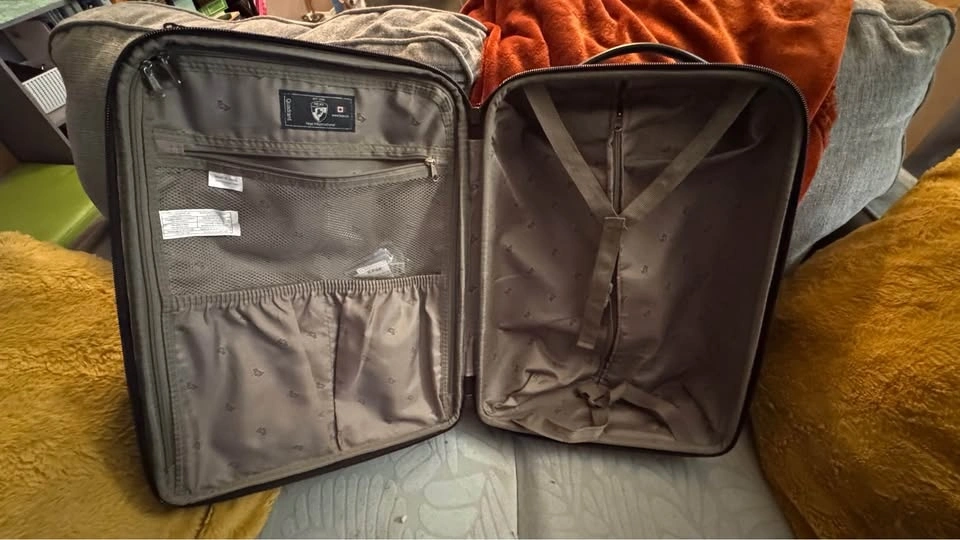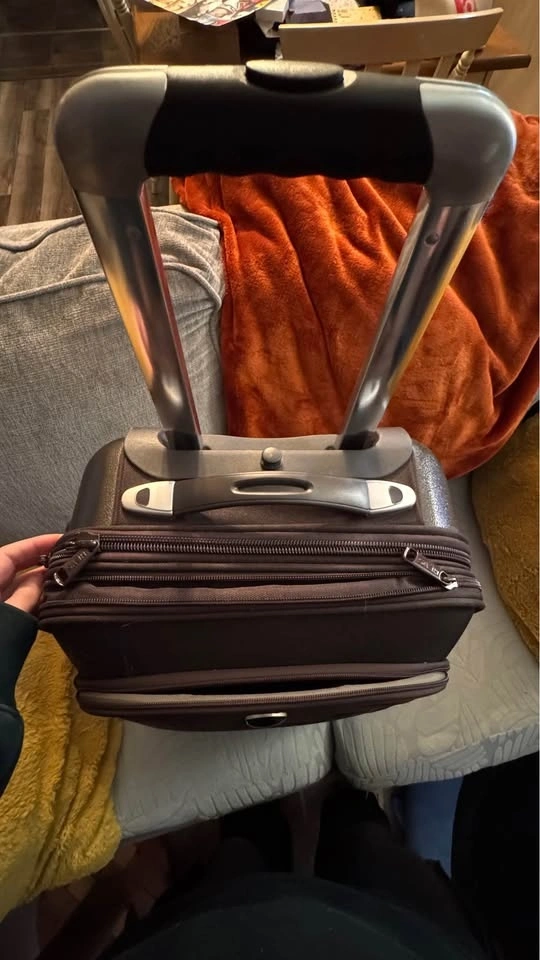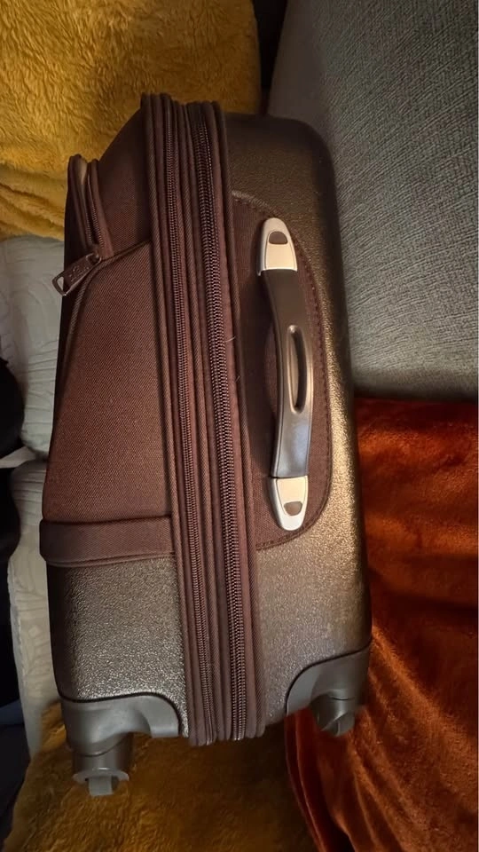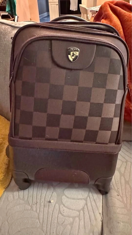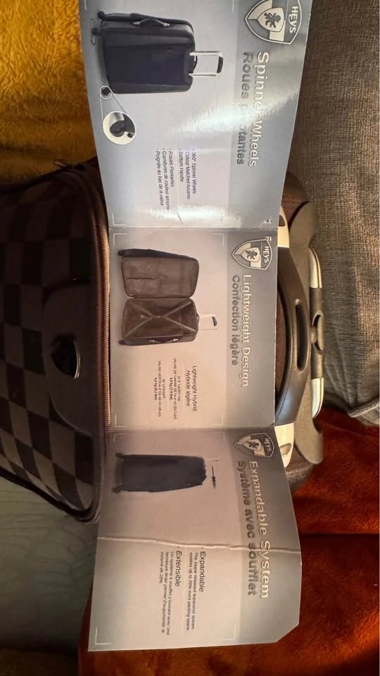 21.5” Carry on, 26” upright, expandable zipper to create more packing space. Has 360 degree spinner wheels, bottom handle. Inside has pockets slots for shoes along with mesh pockets to separate items. One side has fully zipped off compartment to separate space within. Also has 2 outer pockets that are zipped. Will include a luggge lock that was never used, kept in the bag it came in with instructions. Brown Checkered design. Has a couple little scraps on a plastic bearing side but in perfect working condition! Southside pick up, smoke free home, cash only please.