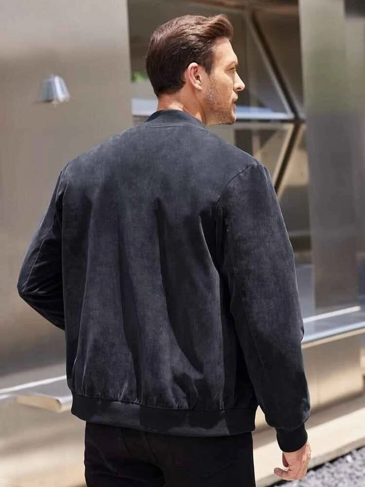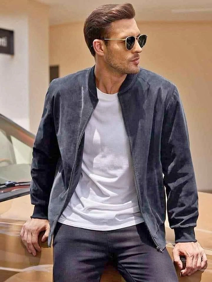Vintage style suede bomber jackets designed for everyday casual wear. The jackets feature a relaxed loose fit with a clean, classic bomber silhouette suitable for daily wear, work environments, or lounging. Constructed from polyester suede fabric, they offer a soft textured appearance while remaining lightweight and easy to maintain. The full length zipper closure combined with ribbed collar, cuffs, and hem allows for comfortable layering across seasons.