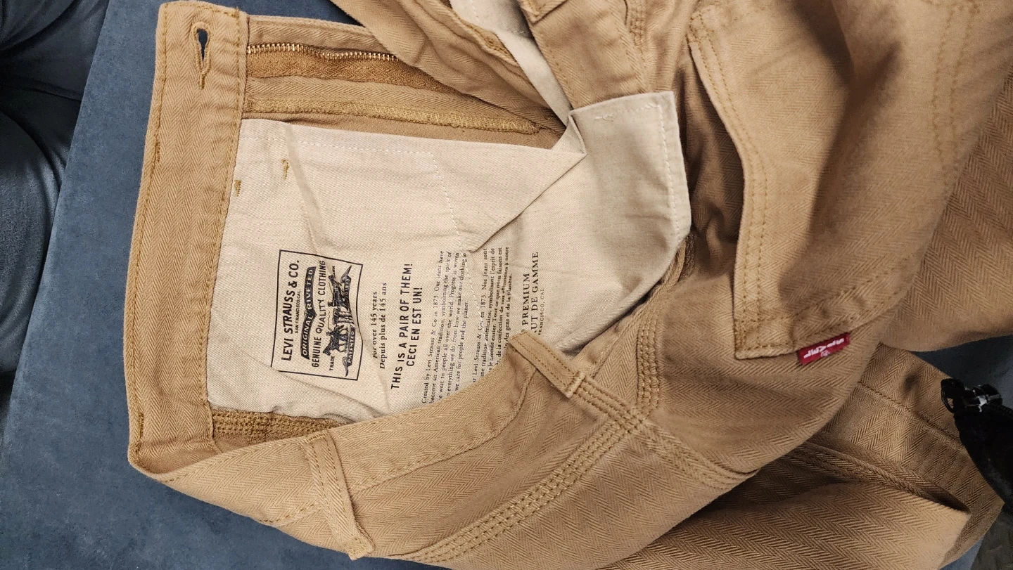 Levi Strauss & Co. brown work pants. Herringbone twill fabric. Waist size is 34 inches, inseam is 34 inches. These pants are built for durability!