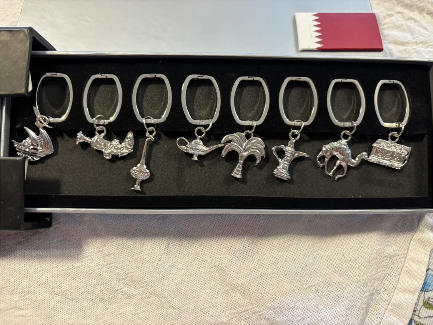 Selling a set of Qatar Charms, complete with the original box! The charms feature iconic symbols. Arabian charms with clip that are removable for use on bangle and necklace, or wine glasses.