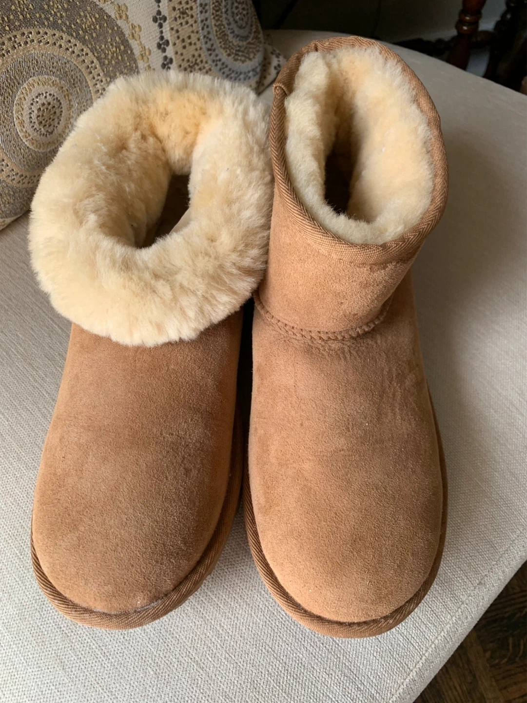 Classic UGG boots for cozy feet. These boots are made with suede and sheepskin lining. They're perfect for staying warm during colder months!