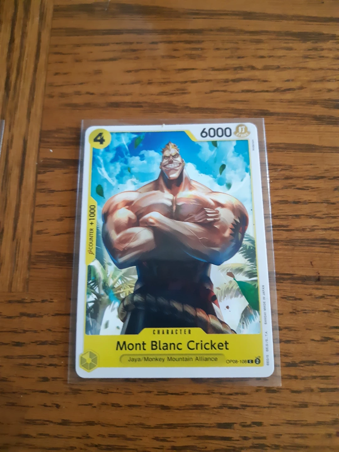Selling a One Piece Trading Card Game card featuring Mont Blanc Cricket. It's card number OP06-108 from the Jaya/Monkey Mountain Alliance set. A great addition to any One Piece TCG collection!
