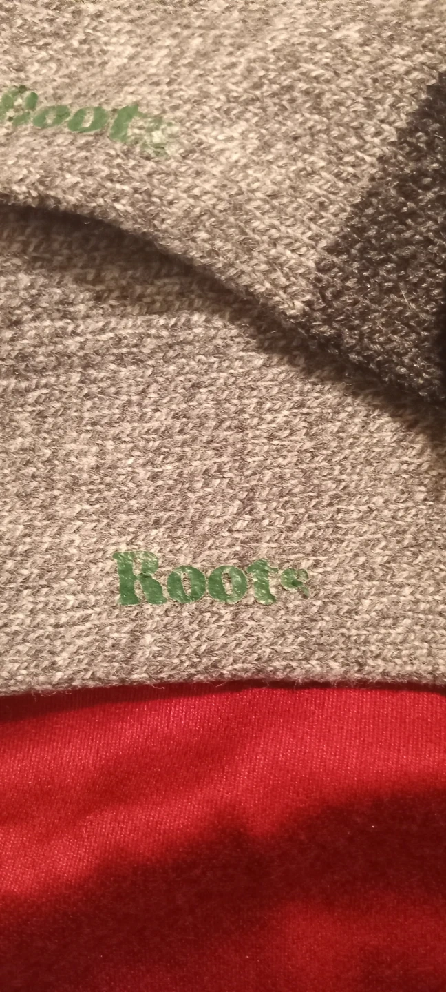 A pair of Roots crew socks in a grey marled knit with a patterned cuff. Features the Roots logo embroidered on the heel. Soft and warm for everyday wear.