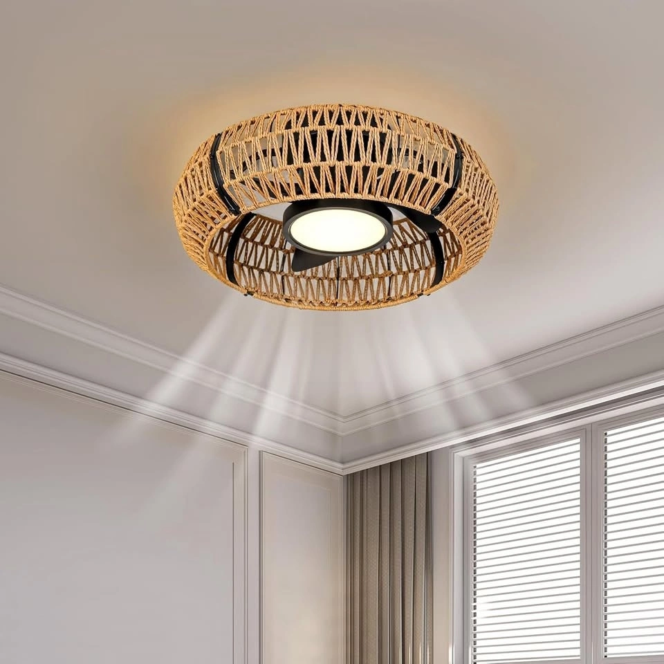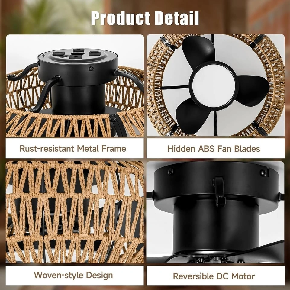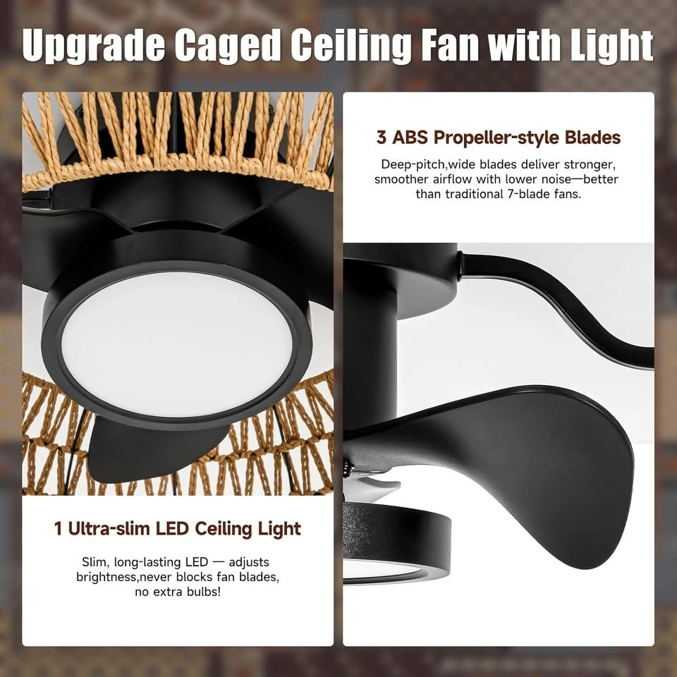20" Caged Ceiling Fan with LED Light - Flush Mount Remote