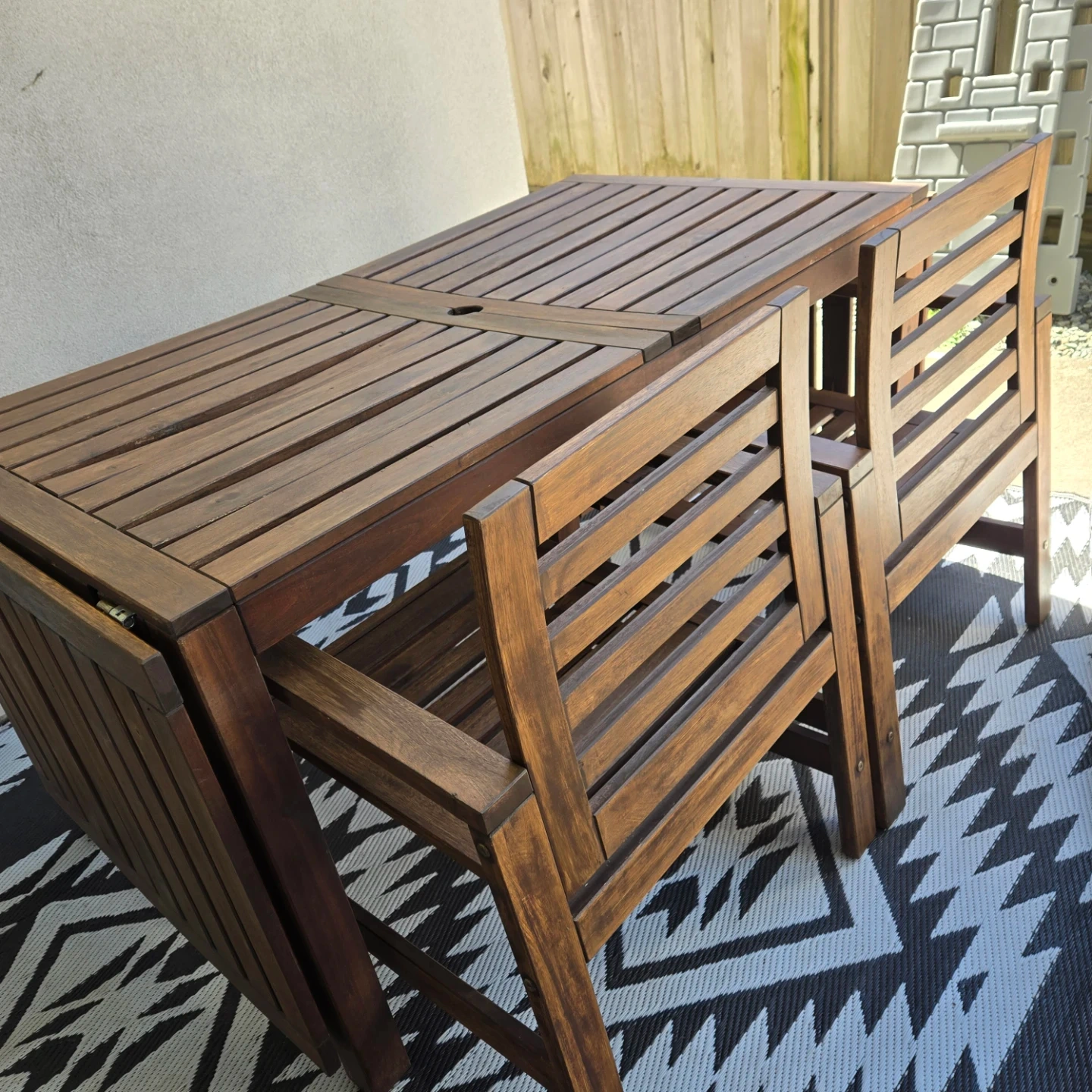 This is the discontinued ikea aplarro folding leaf table and 2 dining chairs.