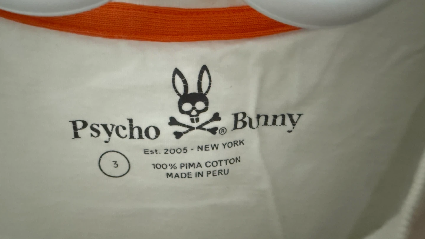 Psycho Bunny graphic t-shirt in white. Made from 100% Pima cotton. This shirt is size 3.