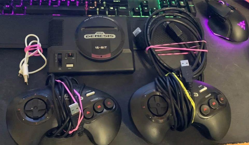 Complete Sega Genesis Mini console setup! Has the console, two controllers, and all cables you need to plug in and play with HDMI.