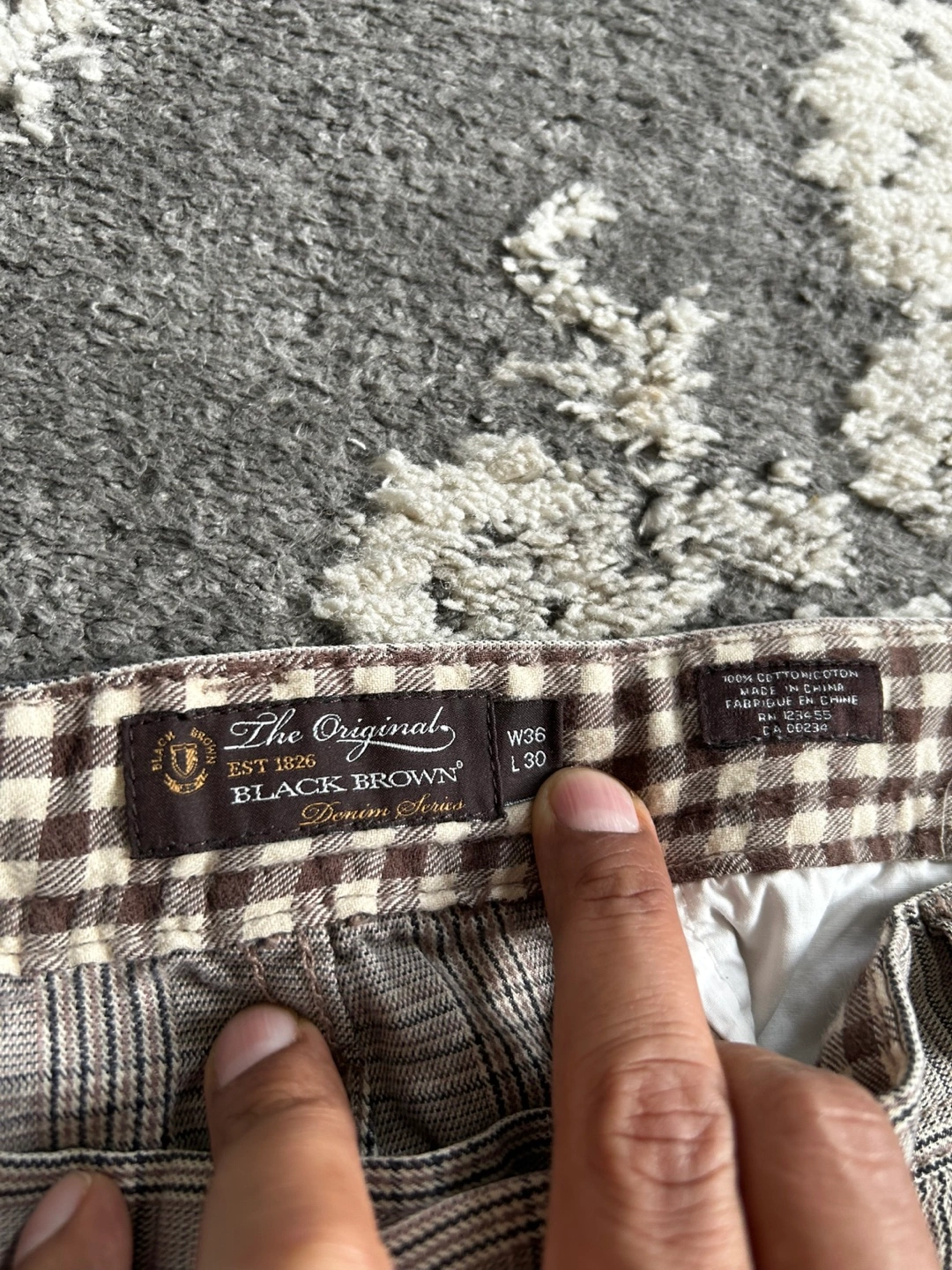 Men's Black Brown Denim Series Plaid Pants - Size W36 L30