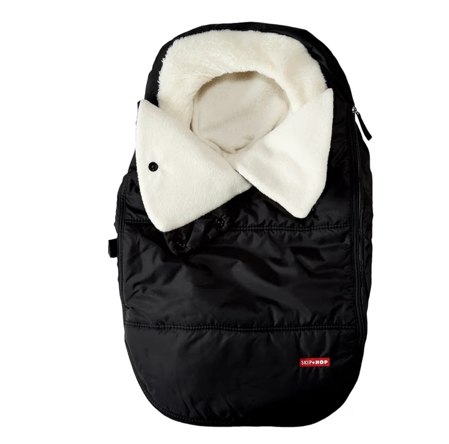 This Skip*Hop Stroll & Go car seat cover is designed for universal fit. It's warm and durable with a windproof and water-repellent outer shell. Elastic edges secure it around car seats, and it's machine washable.