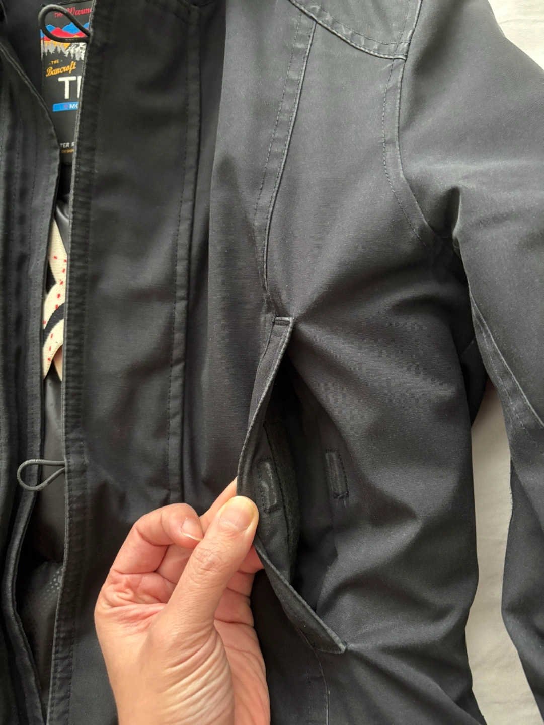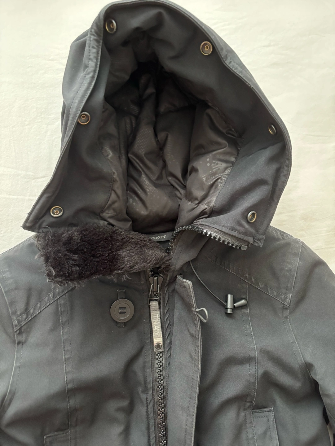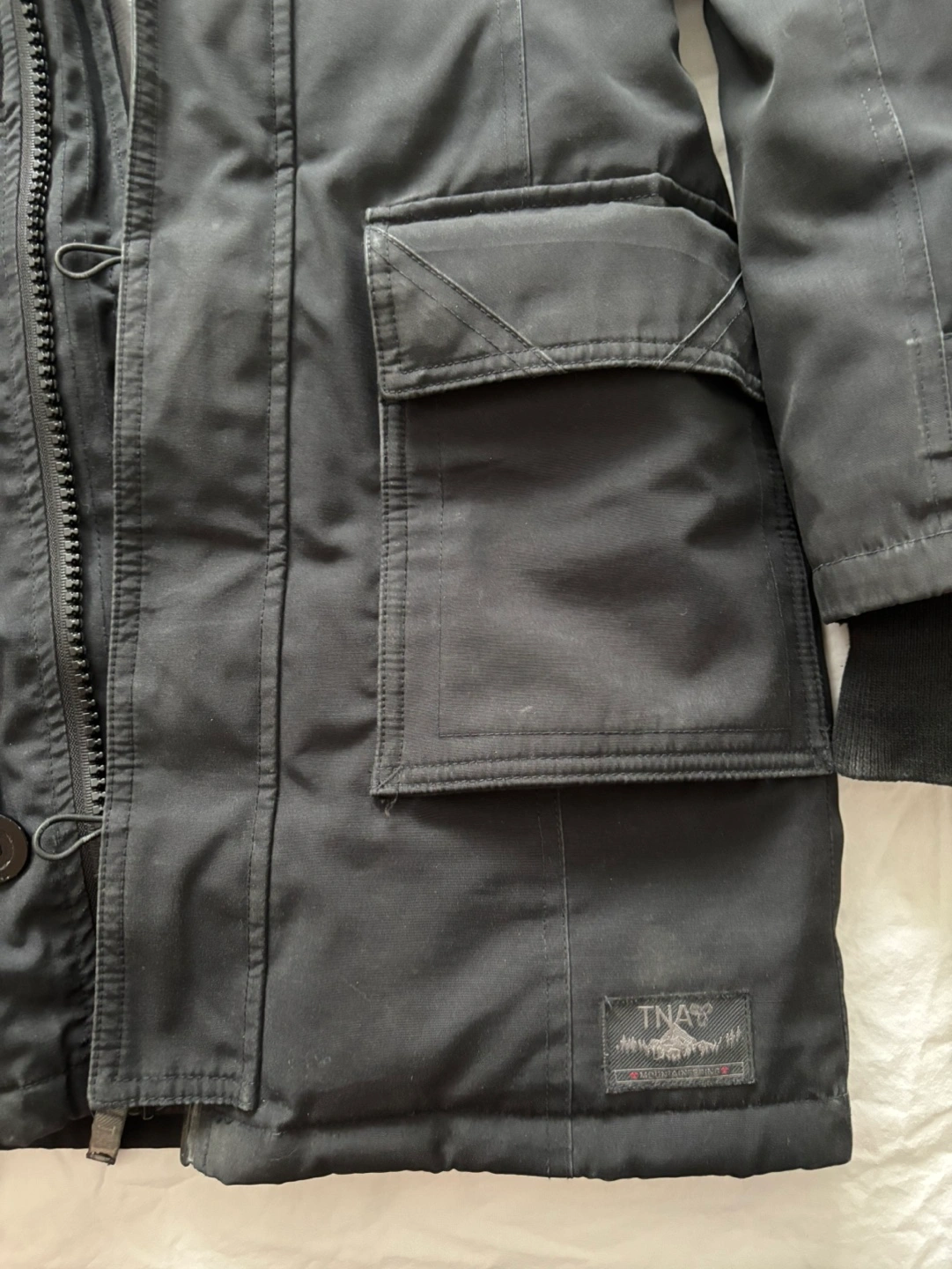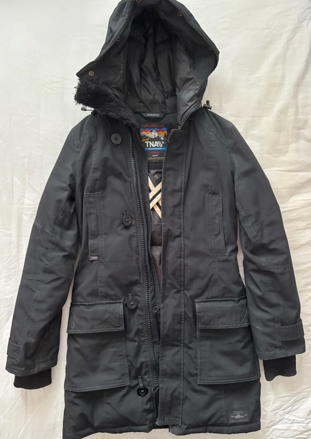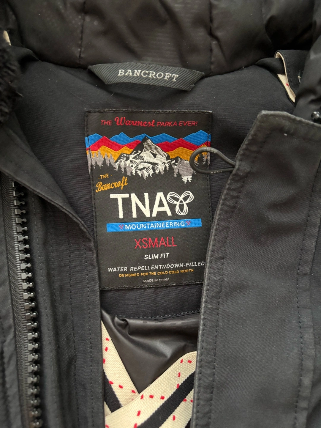 227Women's TNA Bancroft parka. Black, XSmall. Slim fit. Water repellent and down-filled. Designed for cold weather. Hand warmer pockets have magnetic closures. $400+ from Aritzia. Worn for 1 winter.