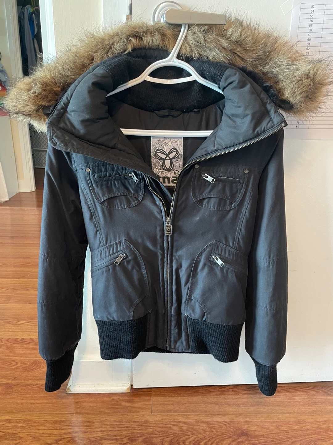 102TNA winter jacket in black! It's a size XS and has a faux fur lining.