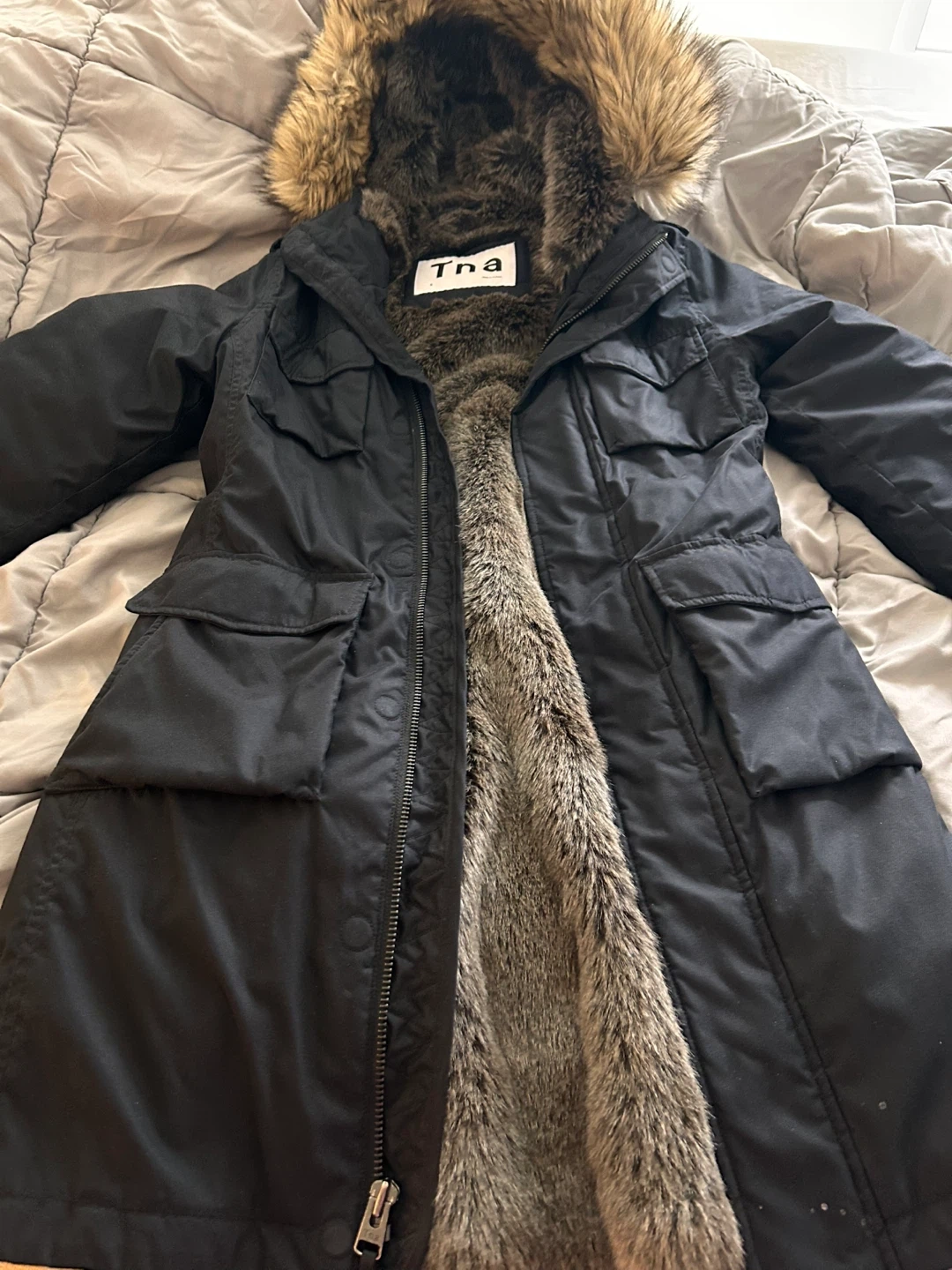 10Selling a TNA black winter parka in size small. It's in great condition and perfect for the cold weather!
