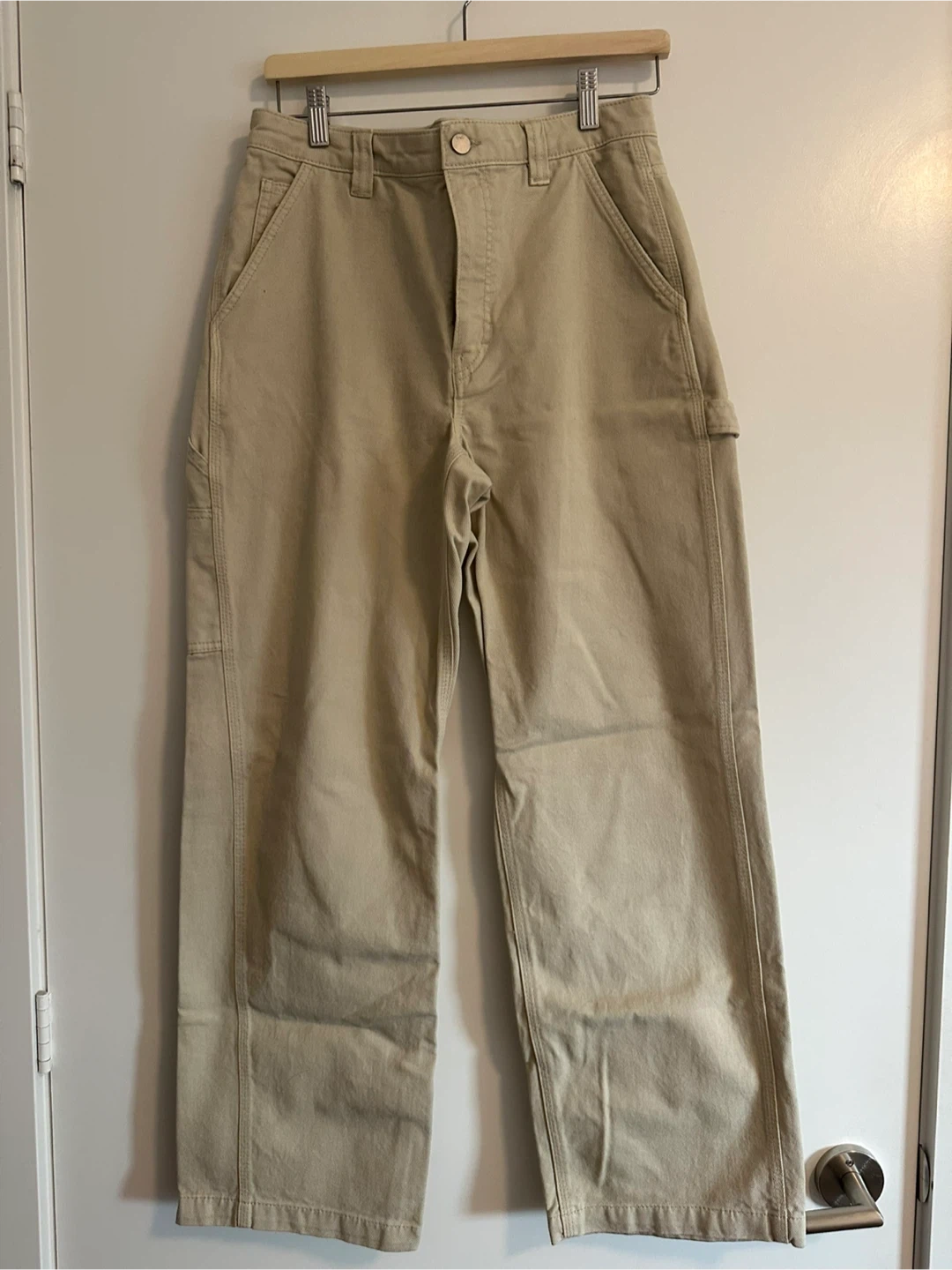41Selling a pair of TNA carpenter pants in a khaki colour. They're a size 8 and in great condition! Barely worn!