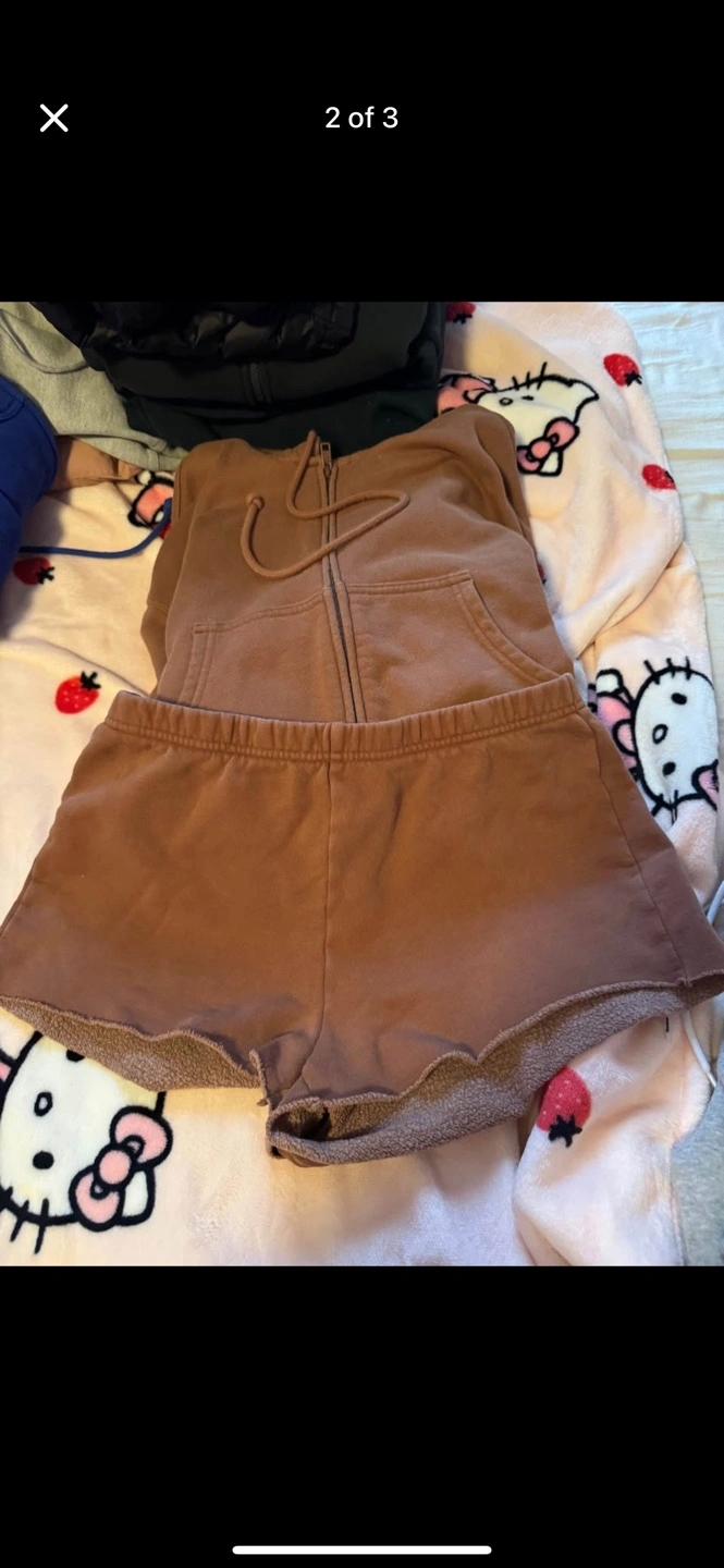 26Mauve-toned hoodie and shorts set. Size medium. Soft and cozy fleece material. Full zip-up hoodie. Relaxed boyfriend fit.