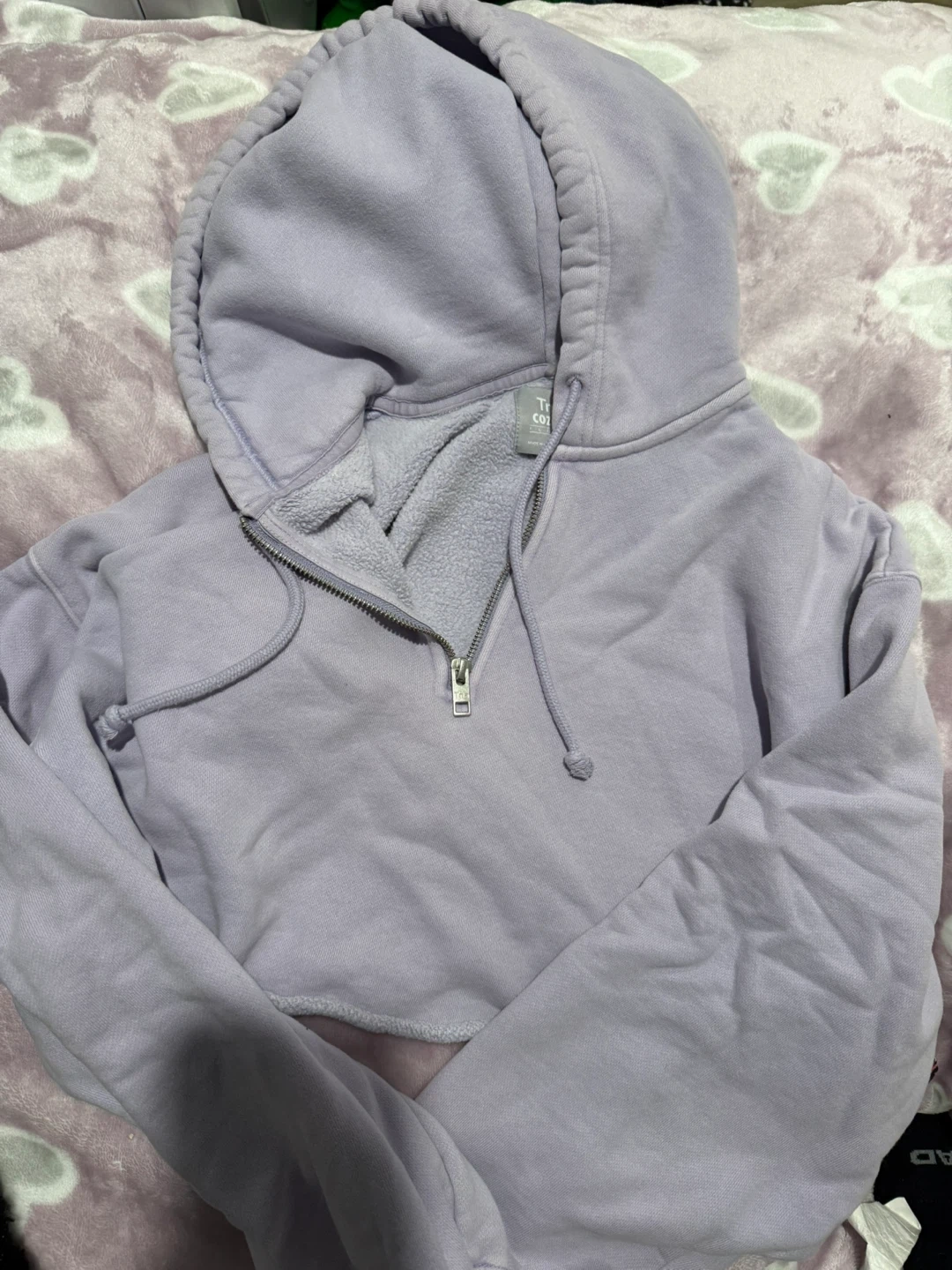 21Selling a Tna Cozy Fleece cropped half-zip hoodie in a lovely lilac colour! It's super soft and cozy, perfect for layering or just lounging around. Size medium