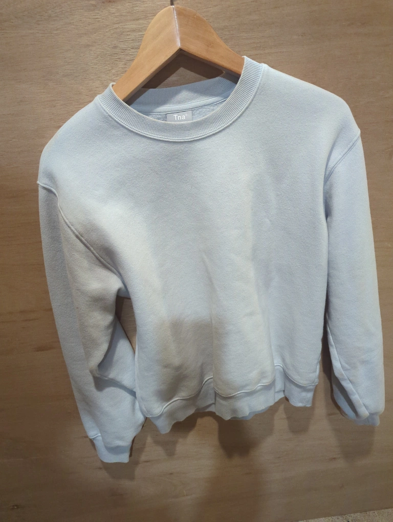 Selling a Tna Cozy Fleece Perfect crewneck in a lovely light blue colour! It's a size small and made of cozy fleece material. Perfect for layering or wearing on its own!