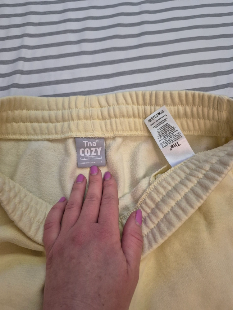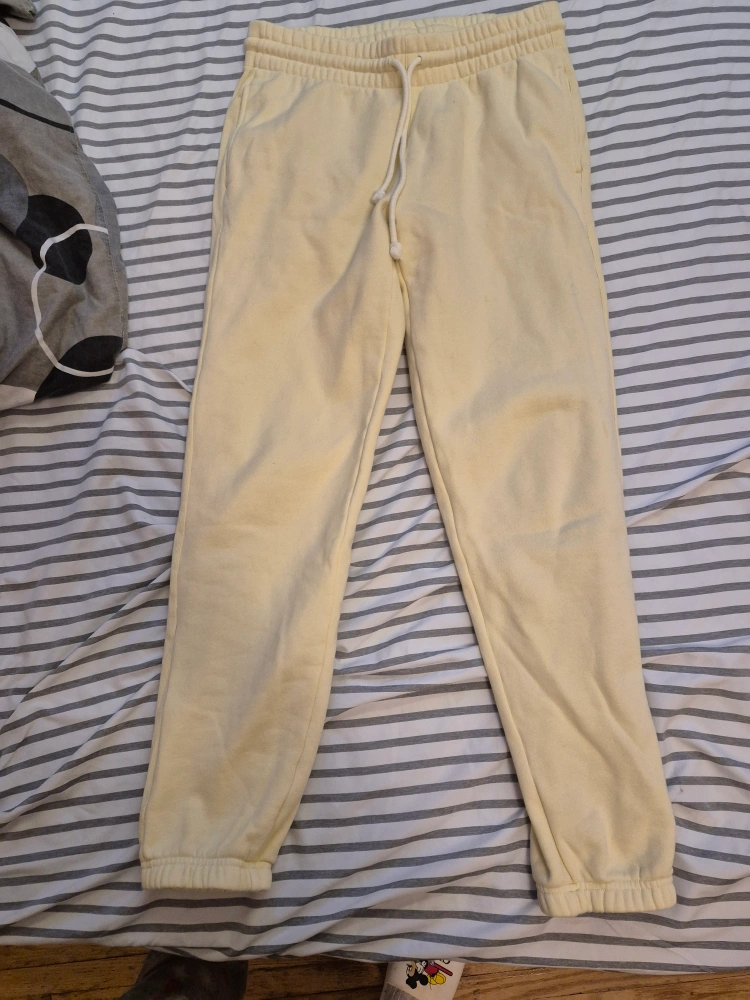 885Yellow sweatpants, size small, made in Sri Lanka.