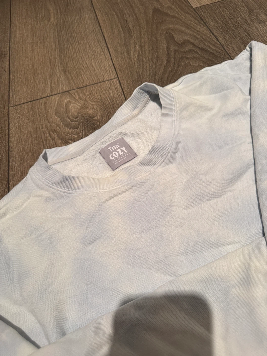 103Selling a Tna Cozy fleece sweatshirt in a lovely light blue colour! It's super soft and comfortable, perfect for lounging or layering. The material is a nice, thick fleece that will keep you warm on cooler days. It's in great condition and ready for a new home!