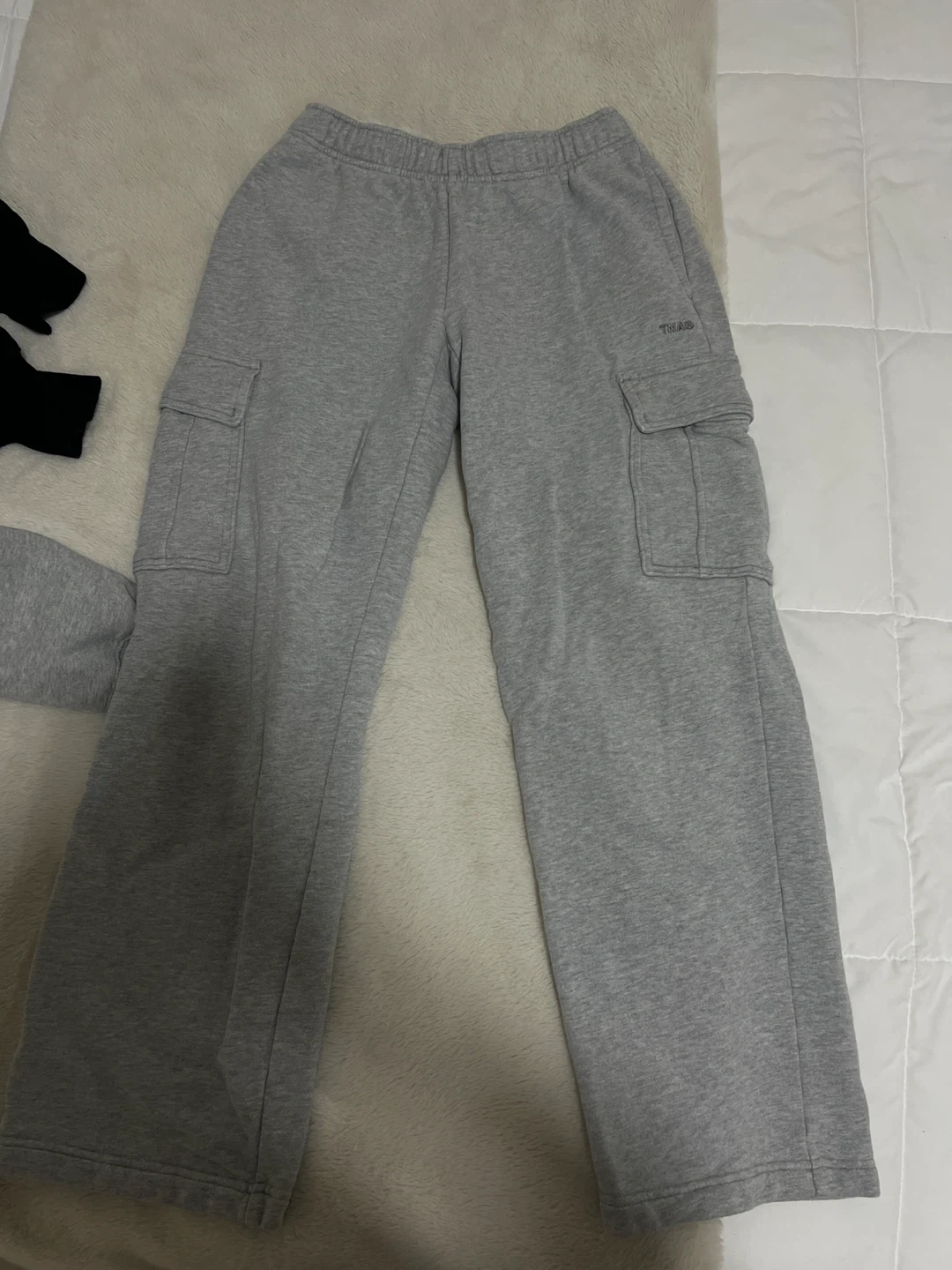 15Selling a pair of TNA grey cargo sweatpants! They're in great condition and super comfy for lounging or running errands. The cargo pockets add a cool, practical touch!