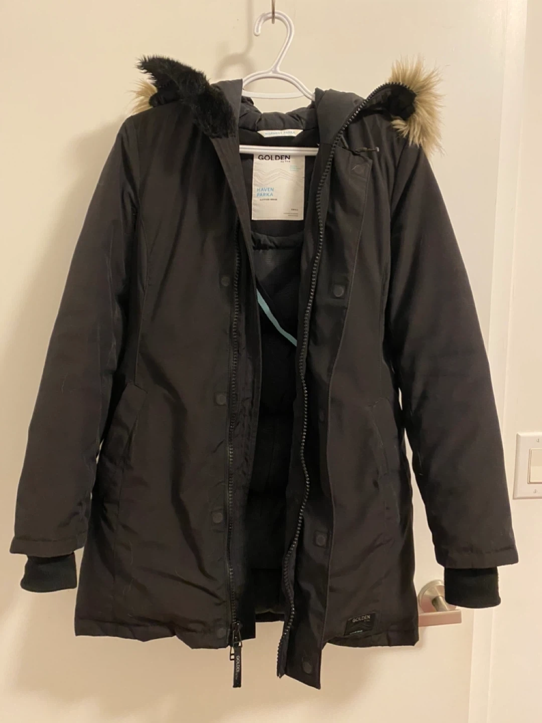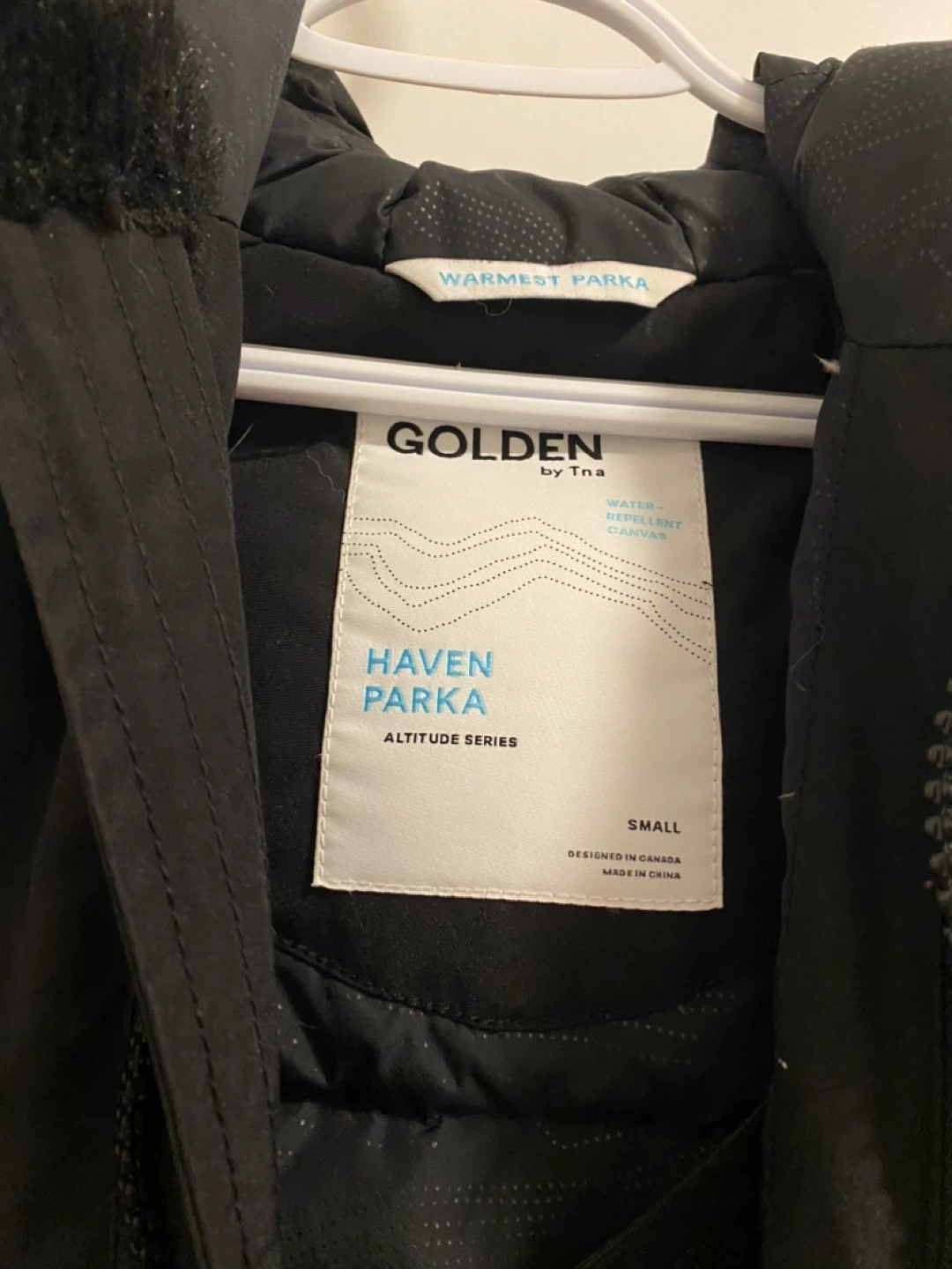 47Selling a Golden by TNA Haven Parka in size small. It's a warm and stylish parka perfect for the Canadian winter. The parka is designed in Canada and features a water-repellent canvas. Slightly worn, still pretty new, a bit small for me now! Pick-up near Regent Park