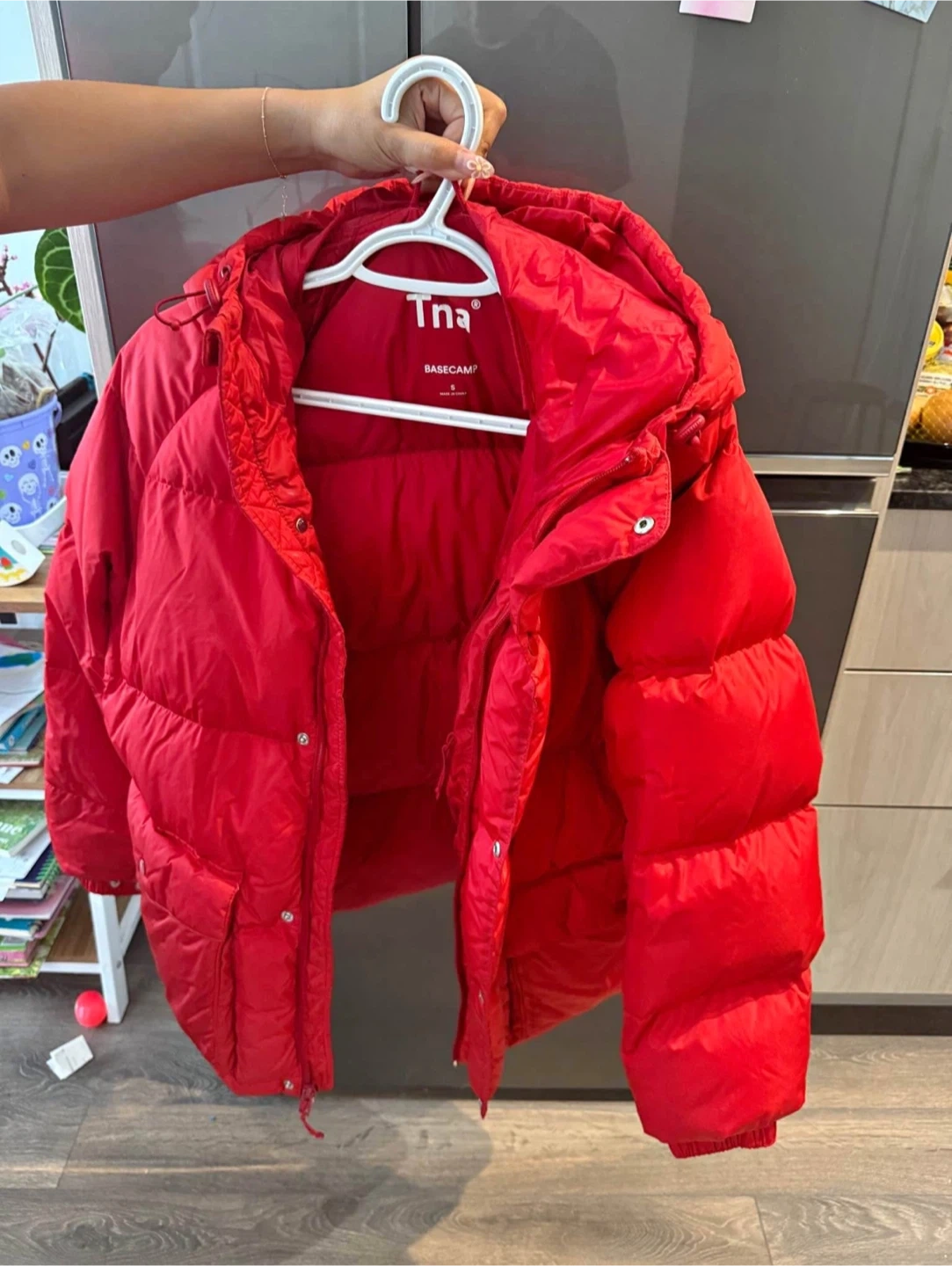 Brighten up your winter with this TNA red puffer jacket! It's in great condition and ready to keep you warm and stylish.