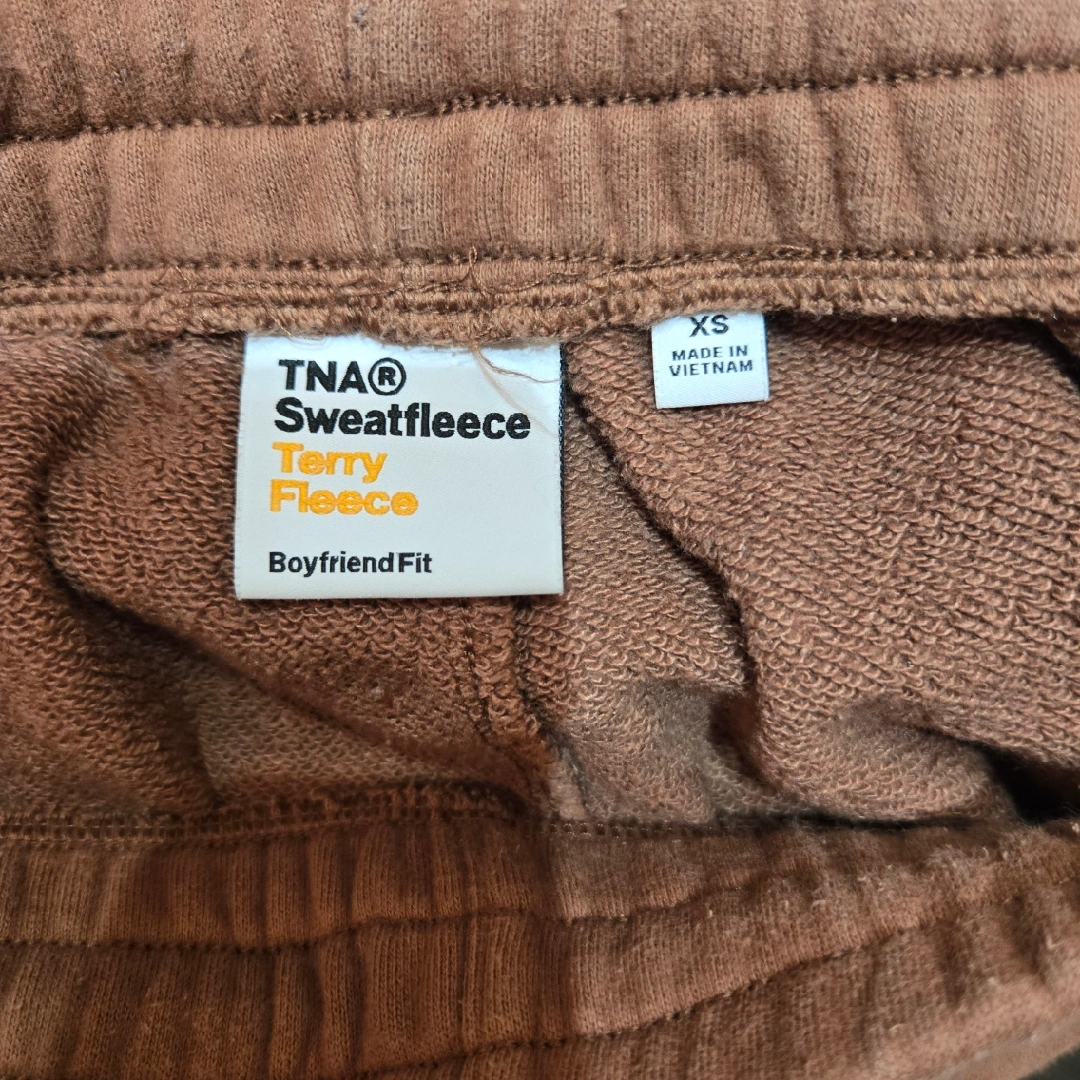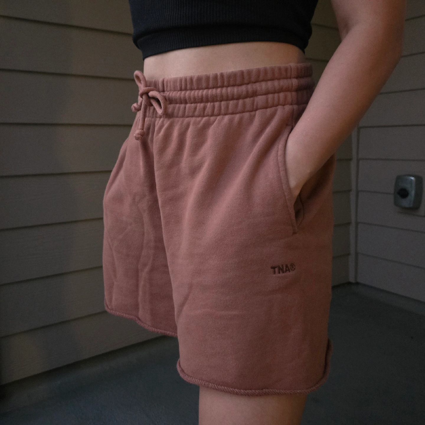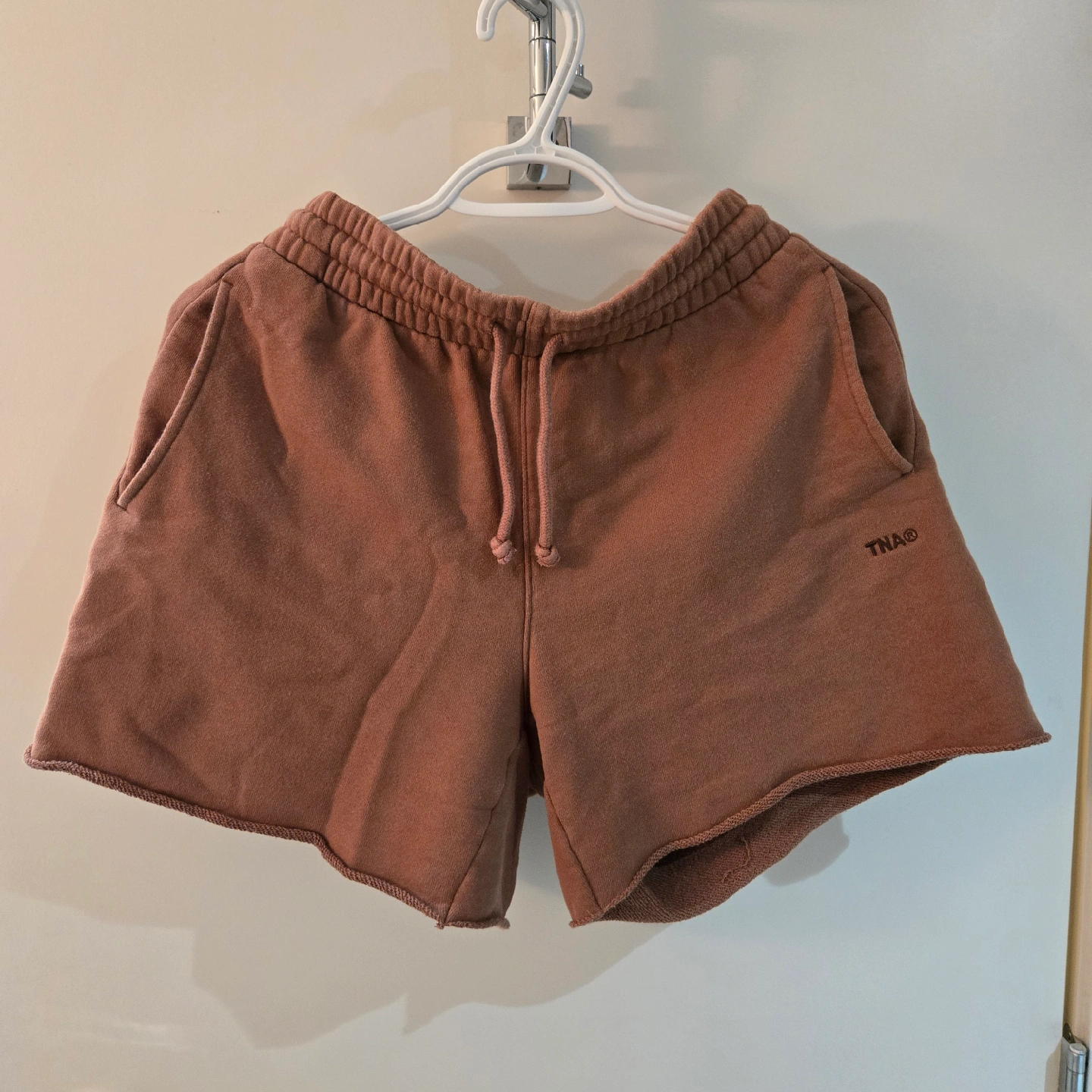 Selling a pair of TNA sweatfleece shorts! Colour is a baked terra cotta feel. These are super comfy and in great condition. Perfect for lounging around or running errands. Size XS