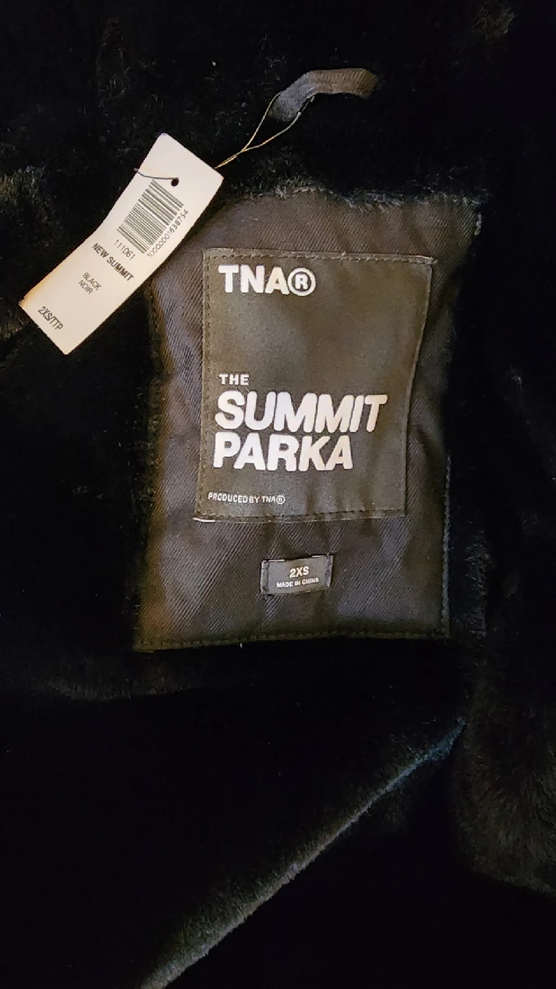 60Selling a TNA The Summit Parka in black, size 2XS. This parka features Climate Lab warmth, with 700+ fill power for superior warmth and less weight. It's responsibly sourced and made with Arctic Twill fabric, making it waterproof and windproof. Designed in Canada to withstand the elements!