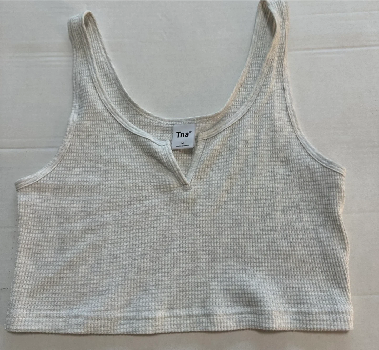 86Selling a Tna Rayna crop thermal waffle tank top in size medium! It's made of 60% cotton and 40% polyester, so it's super comfy and easy to care for. Perfect for layering or wearing on its own during warmer weather
