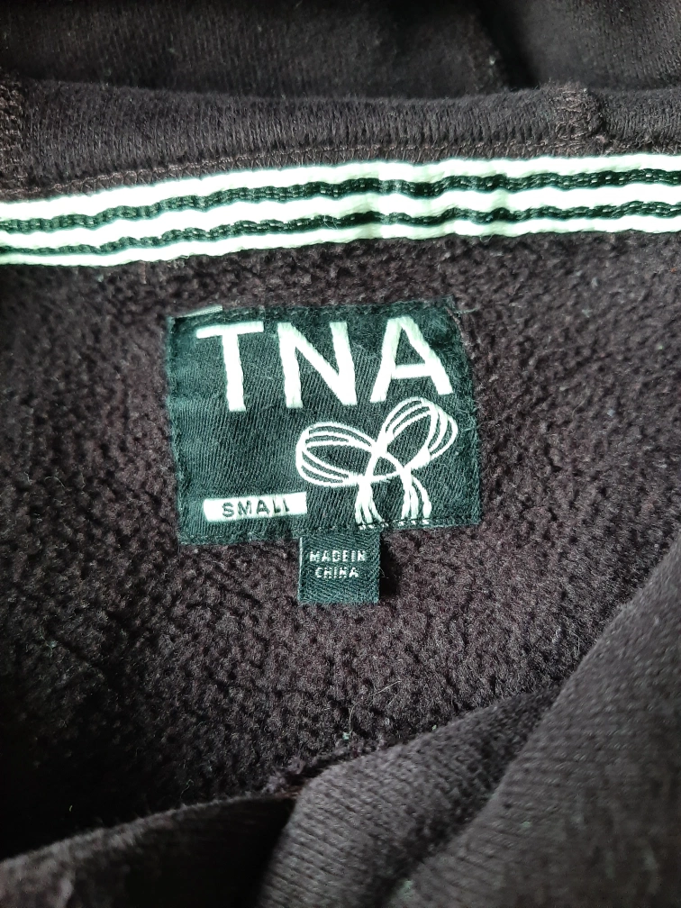 229Women's TNA hoodie. Burgundy colour. Features a unique embroidered logo on the chest. Long sleeves, drawstring hood, kangaroo pocket.