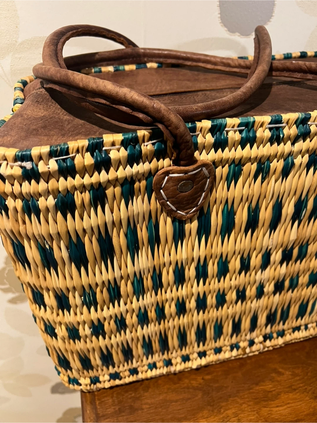 Woven Tote Bag with Leather Accents