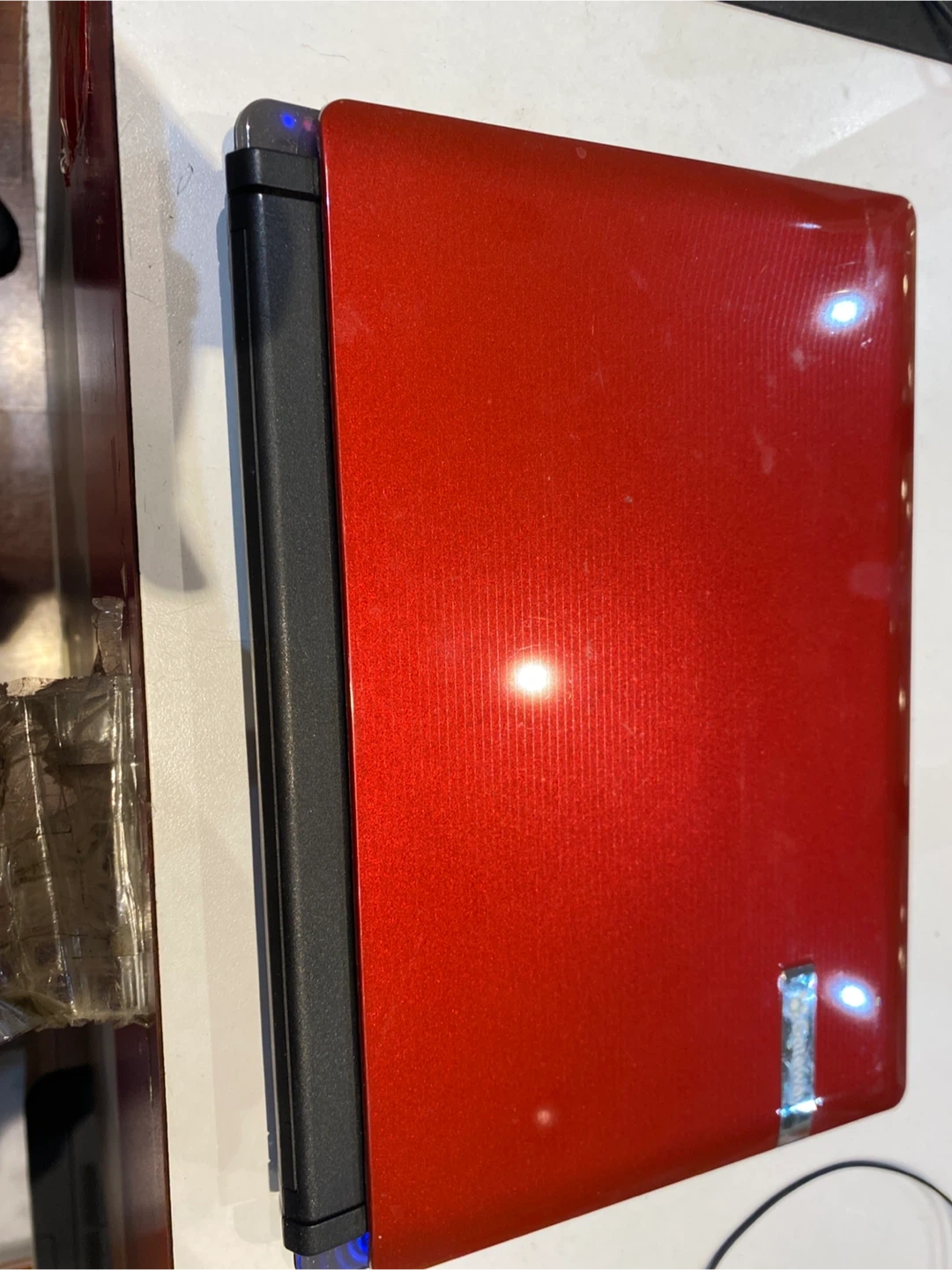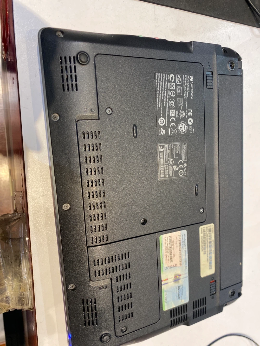 Gateway CM2 N214 netbook laptop with a red lid. It features an Intel Atom processor, 2GB of RAM, and a 160GB hard drive. This device runs Windows 10