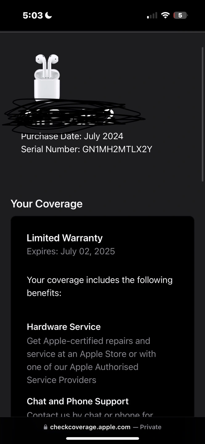 Wireless earbuds. Includes charging case. Good condition. Purchased July 2024. Warranty expires July 2, 2025.