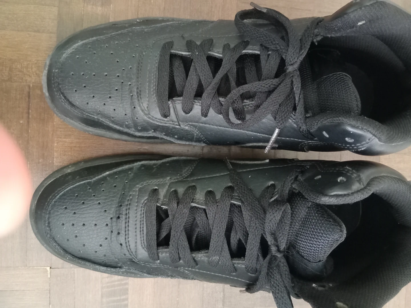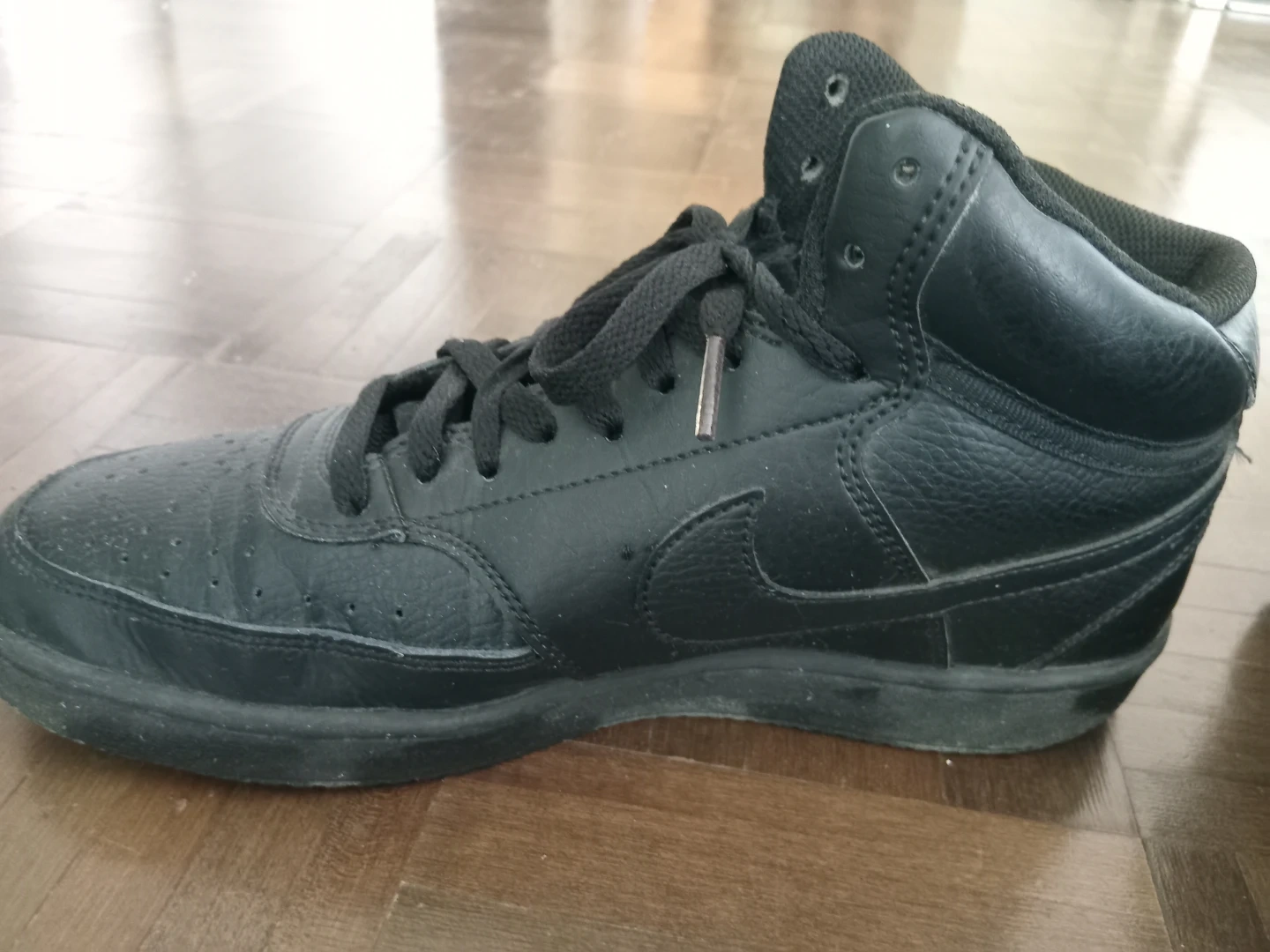 Black Nike Court Vision Mid sneakers for women. Size US 8.5 (EU 42). These high-tops are made of leather and synthetic materials. Laces closure. Great for casual wear!