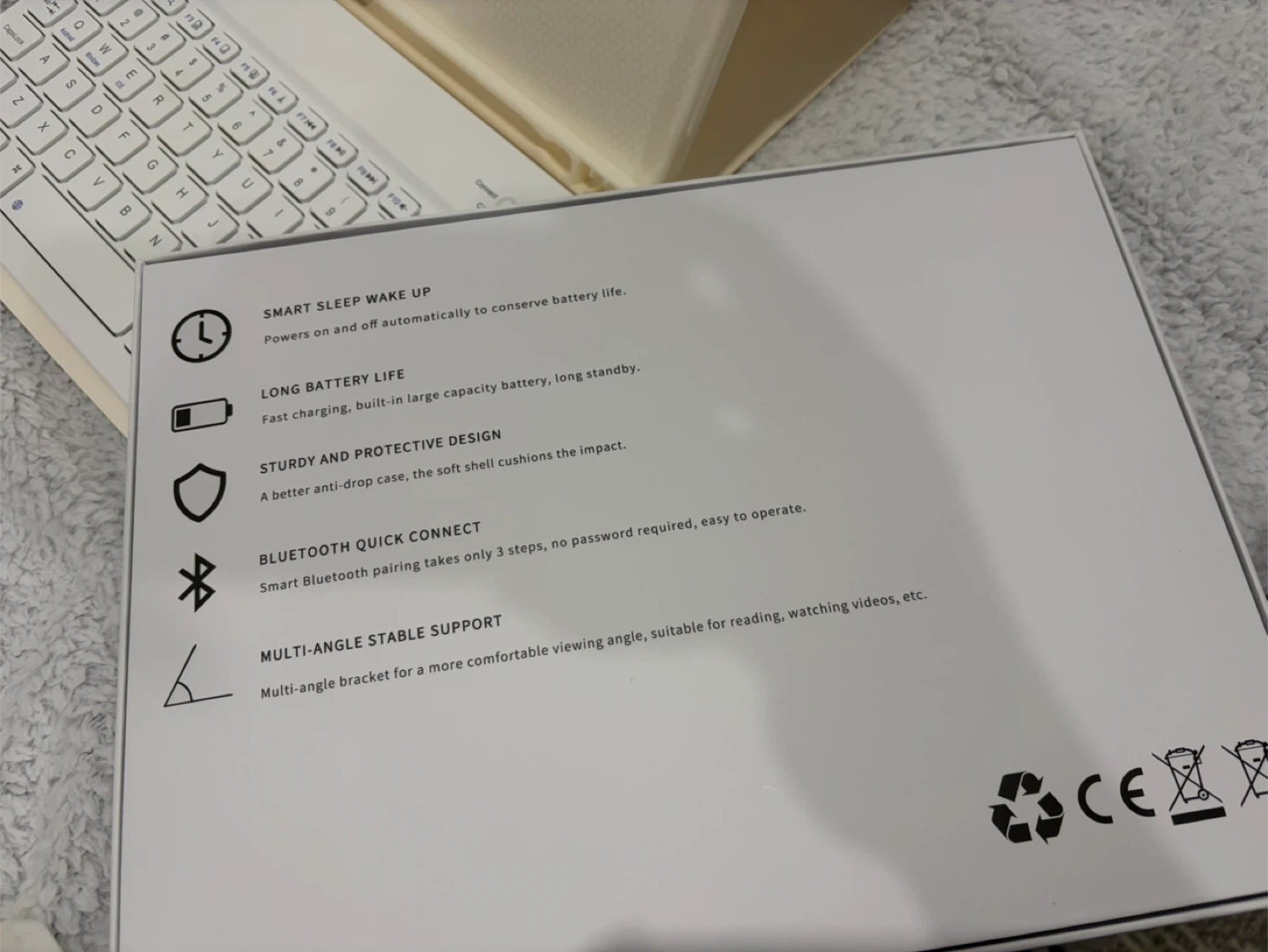 This wireless keyboard case offers smart sleep/wake functionality and a long-lasting battery. It's a sturdy and protective design with easy Bluetooth quick connect. The multi-angle bracket provides comfortable viewing for reading or watching videos.