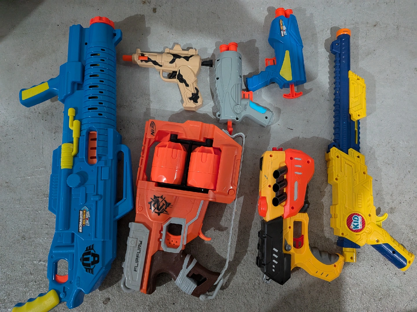 Selling a bundle of you blasters! Great for some outdoor fun. Includes a variety of models in different colours. Perfect for kids and adults alike who enjoy Nerf battles! $2 each *** No bullets/ammunition