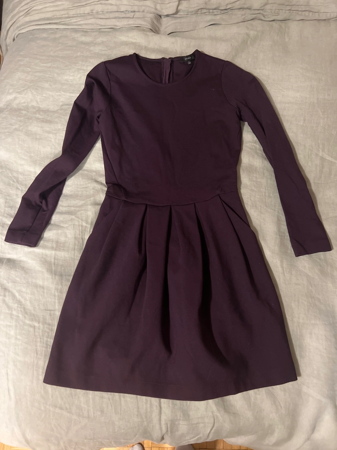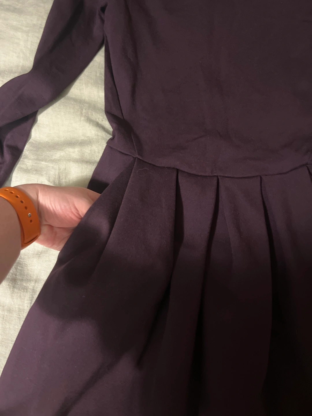 Purple/maroon long sleeve dress with pockets and back zipper closure. It was only worn once to a holiday party