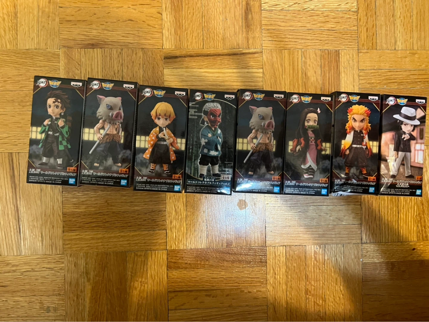 Collection of Banpresto Demon Slayer figures. Includes characters like Tanjiro, Nezuko, Zenitsu, Inosuke, Giyu, and Rengoku. Figures come in original boxes. Great for any anime fan!