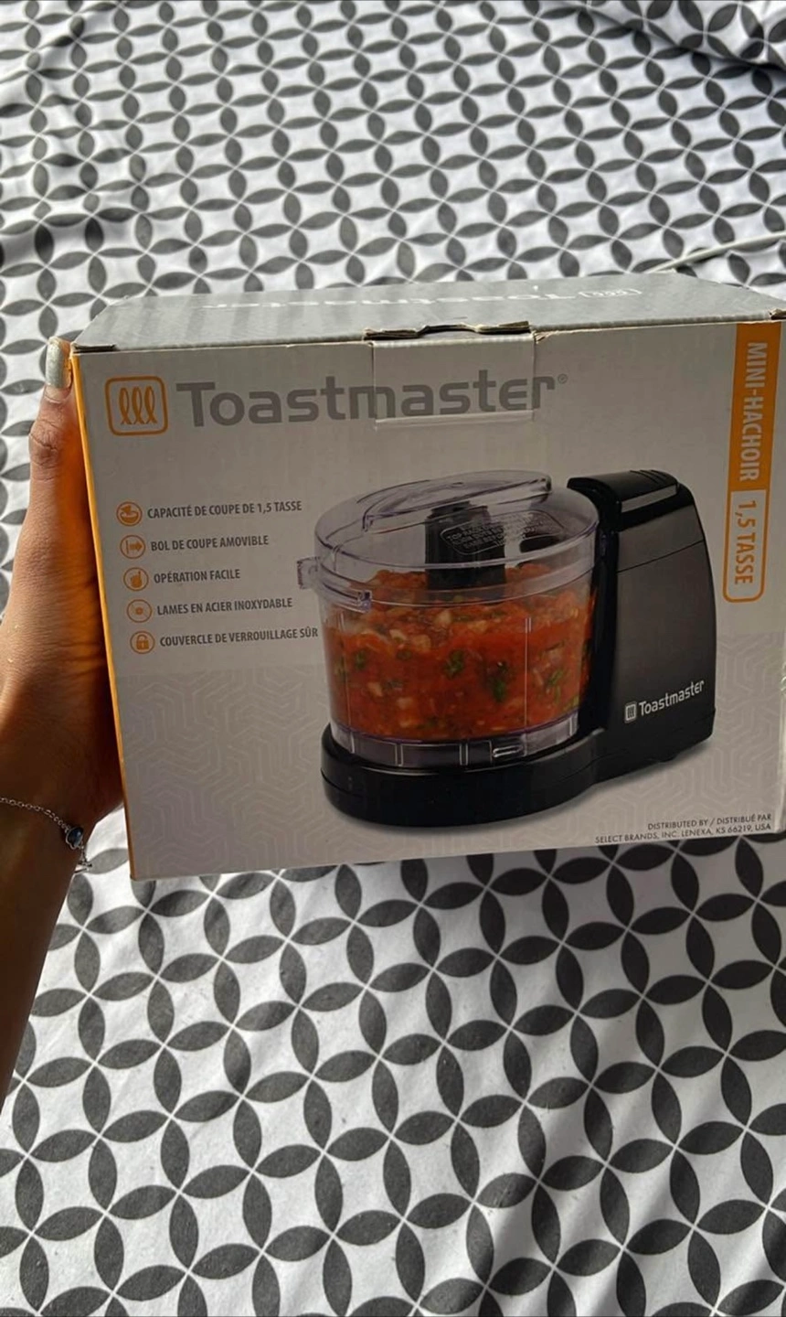 Selling a Toastmaster mini food chopper. Features include: - Removable bowl - Easy operation - Stainless steel blades - Secure locking lid