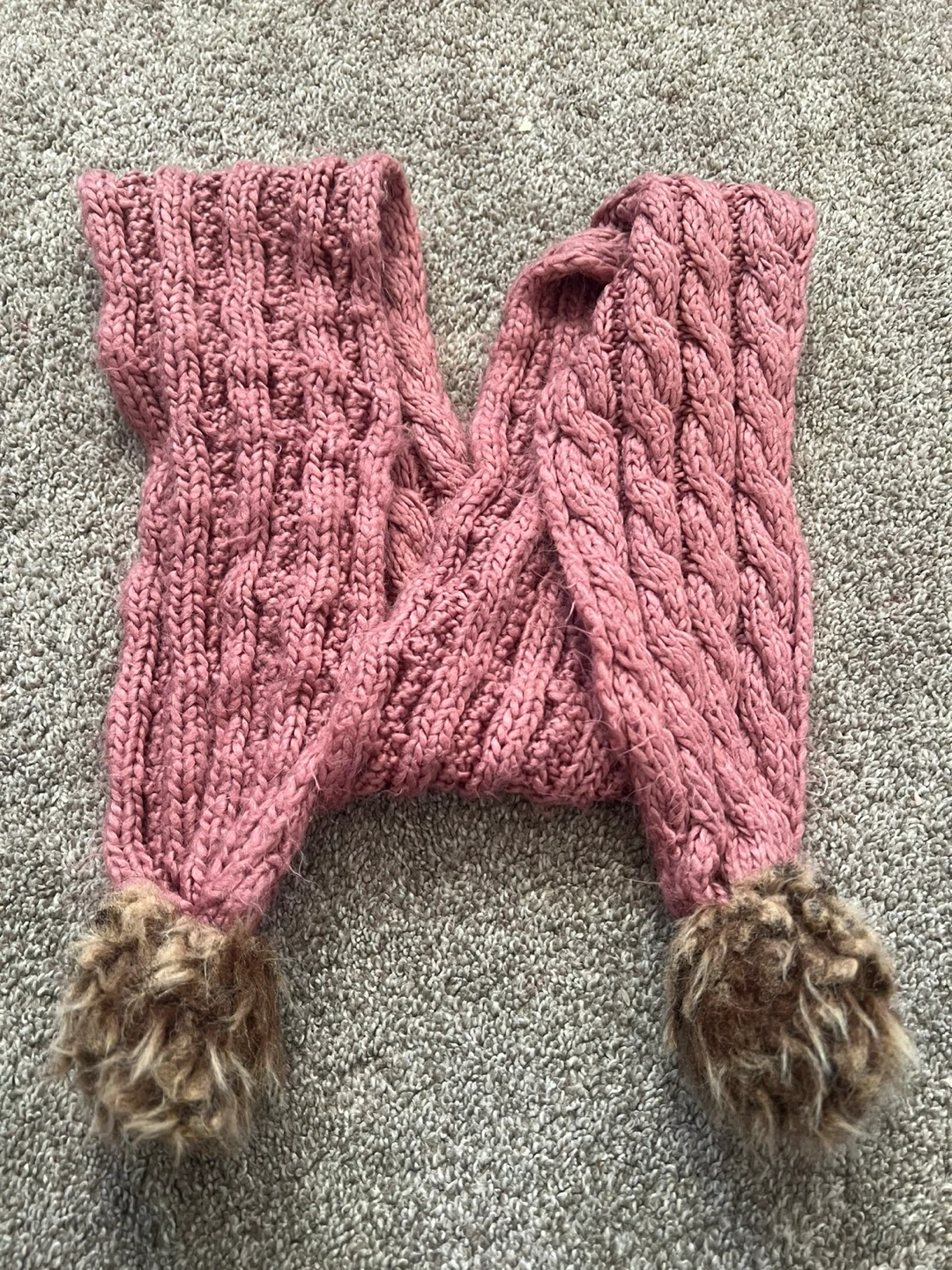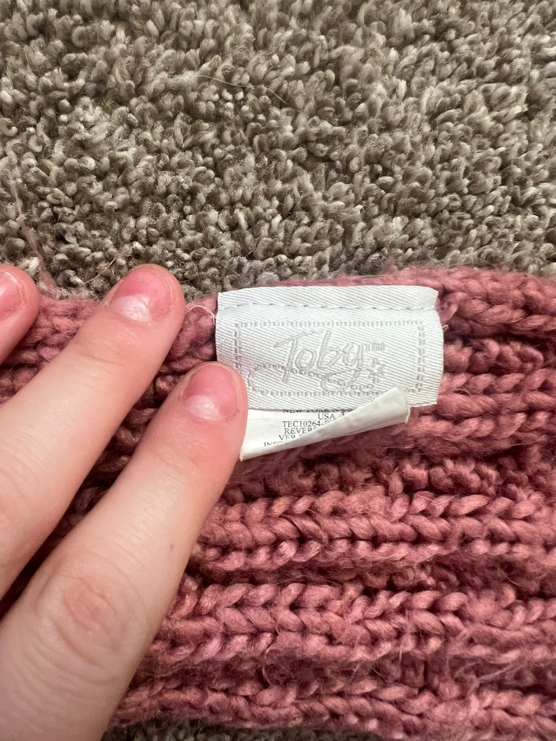 17Cozy up with this cute knit scarf from Toby! It's a lovely shade of pink and features fun pom poms on the ends. Perfect for adding a touch of warmth and style to any outfit!
