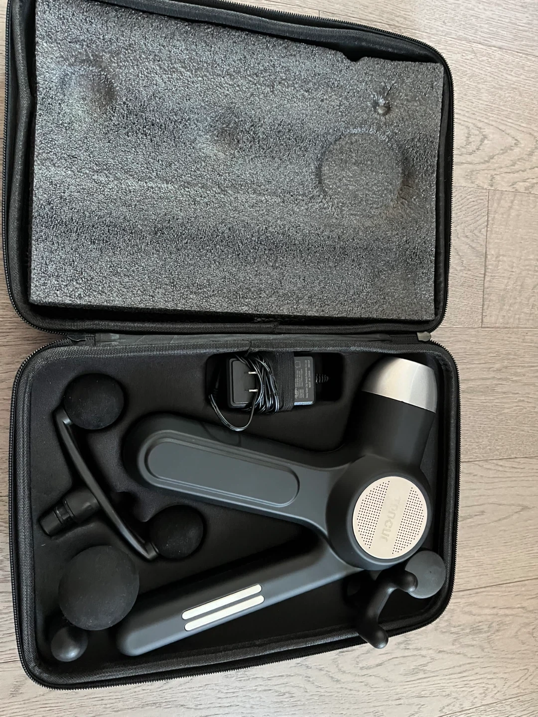 Selling a TOCUCU massage gun in great condition! It comes with multiple attachments and a convenient carrying case. Perfect for relieving muscle soreness after workouts or a long day. Includes a charger so it's ready to use!