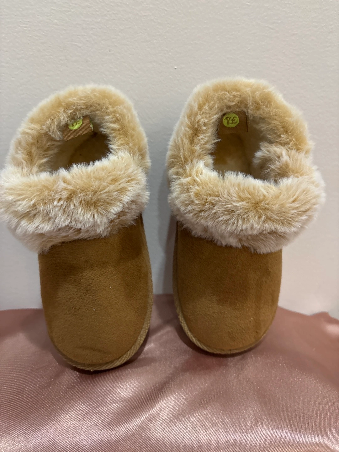 113Adorable brown slippers. Faux fur trim. Size 9 Cozy and warm.