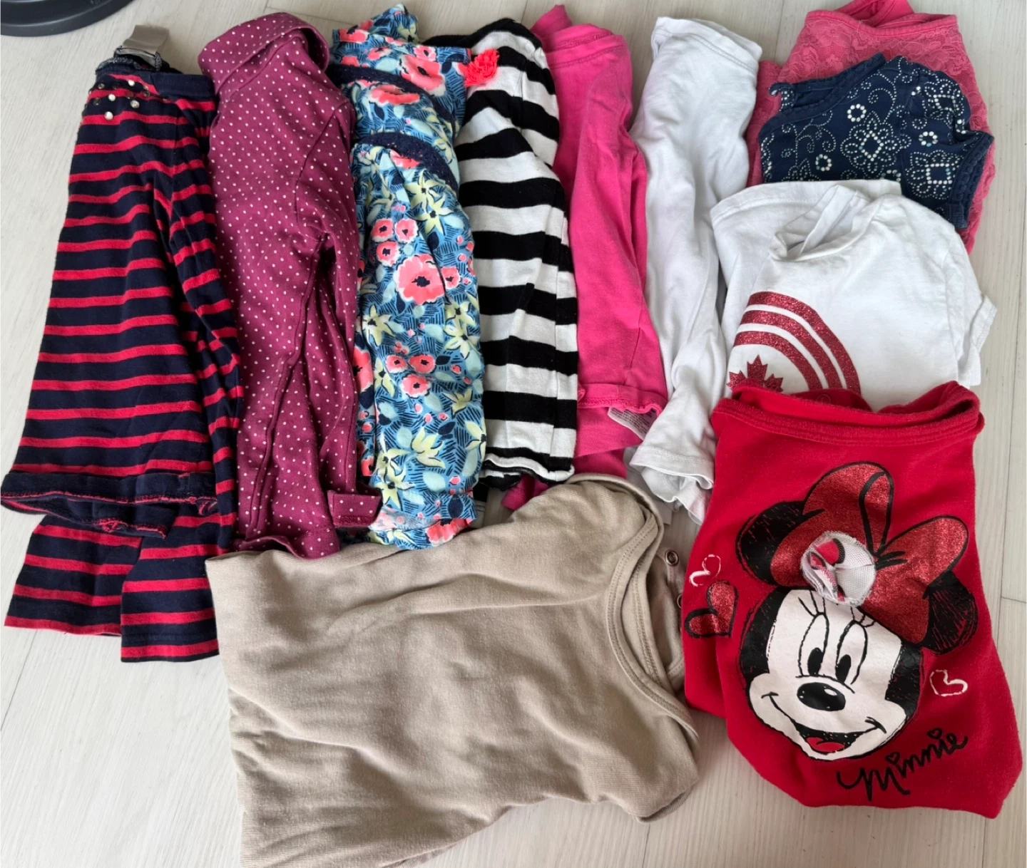 187Cash only 6 long sleeve shirts 1 long sleeve onesie 3 tshirts 1 short sleeve onesie 1 zipper pj 1 summer romper 1 dkny summer dress 1 Nike hooded sweater 3 shorts 2 skirts 6 pants Total 26 pieces Most pieces in great condition only a few have small staining Smoke free home