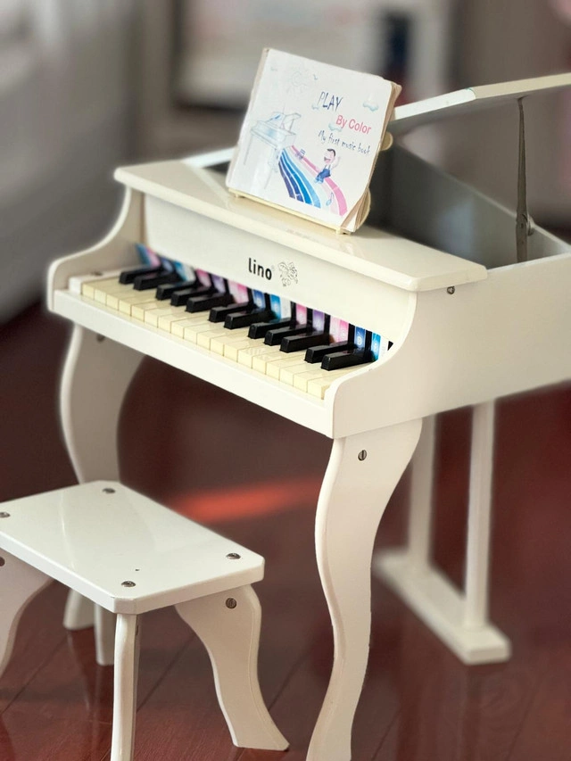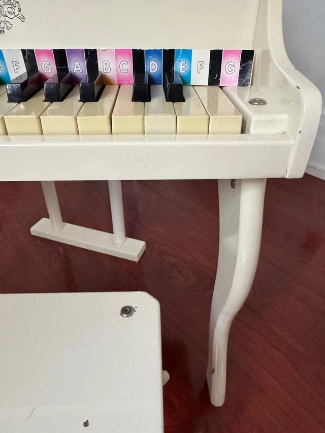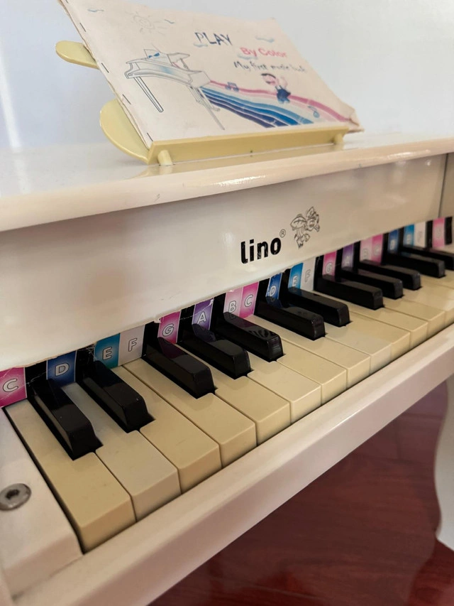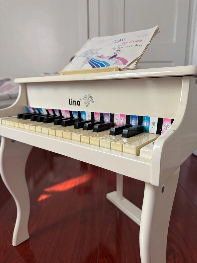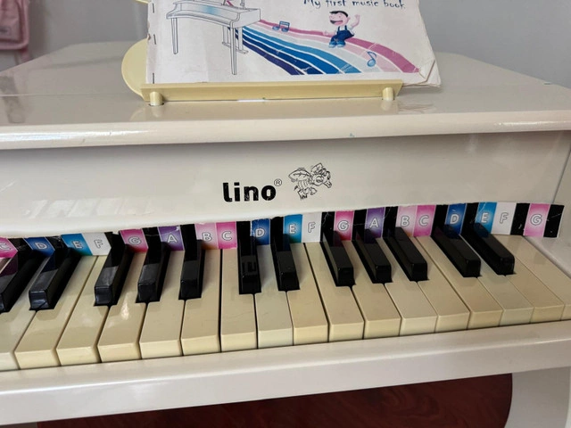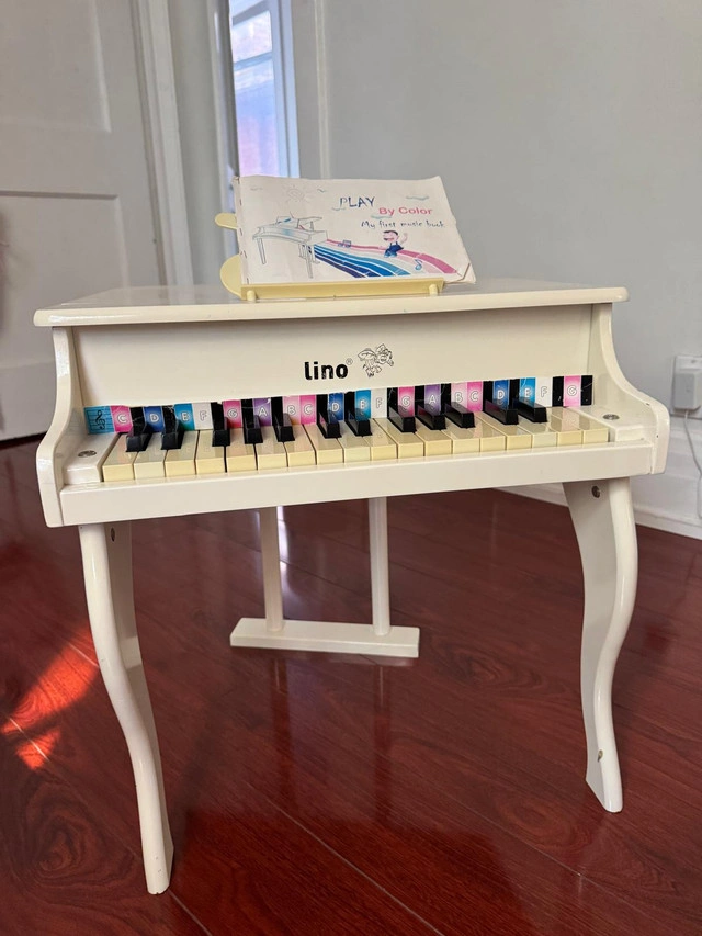 27Fun and musical! Gently used Lino toddler piano comes with its matching stool and a music book with notes. Originally white, now slightly yellowed with age. Perfect for little beginners to explore music. See my other listings for more!