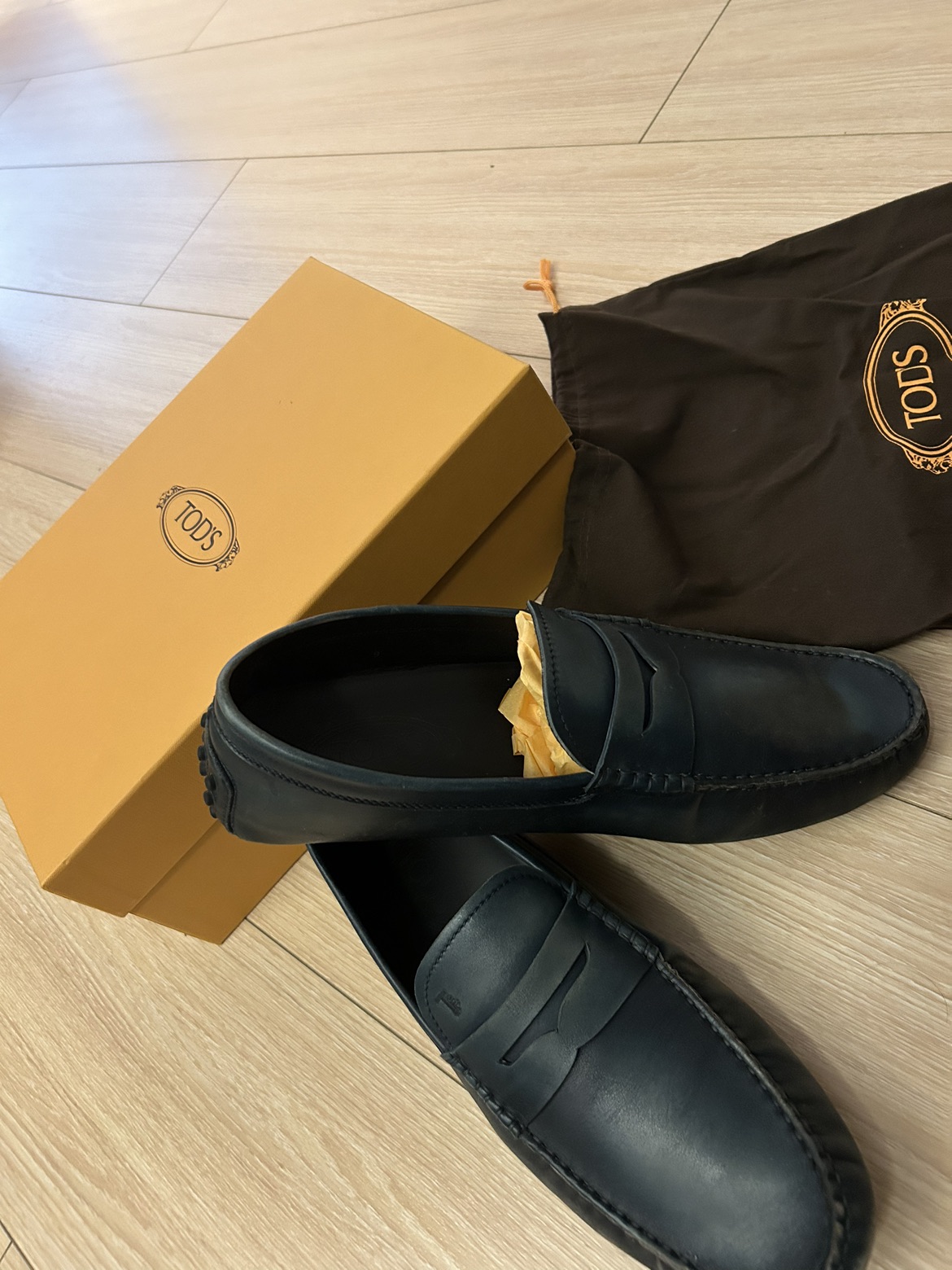 20For sale is a pair of Tod’s Gommino navy blue leather loafers in men size 10 US (9 UK). I received this as a gift and tried in on a couple times but this is not really my style. New is about $600-$700 depending in the store/site and I am willing to sell for $300.