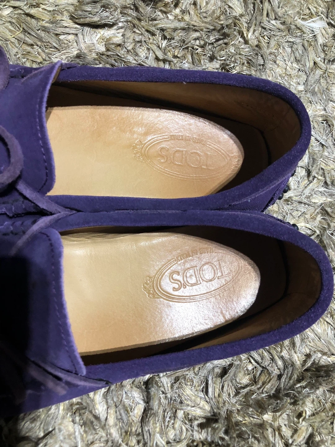 65Selling a pair of Tod's loafers in a lovely purple suede! They're in great condition and would be a stylish addition to your wardrobe Condition: 8.5/10 Size 8.5 fits size 9