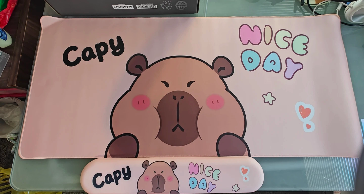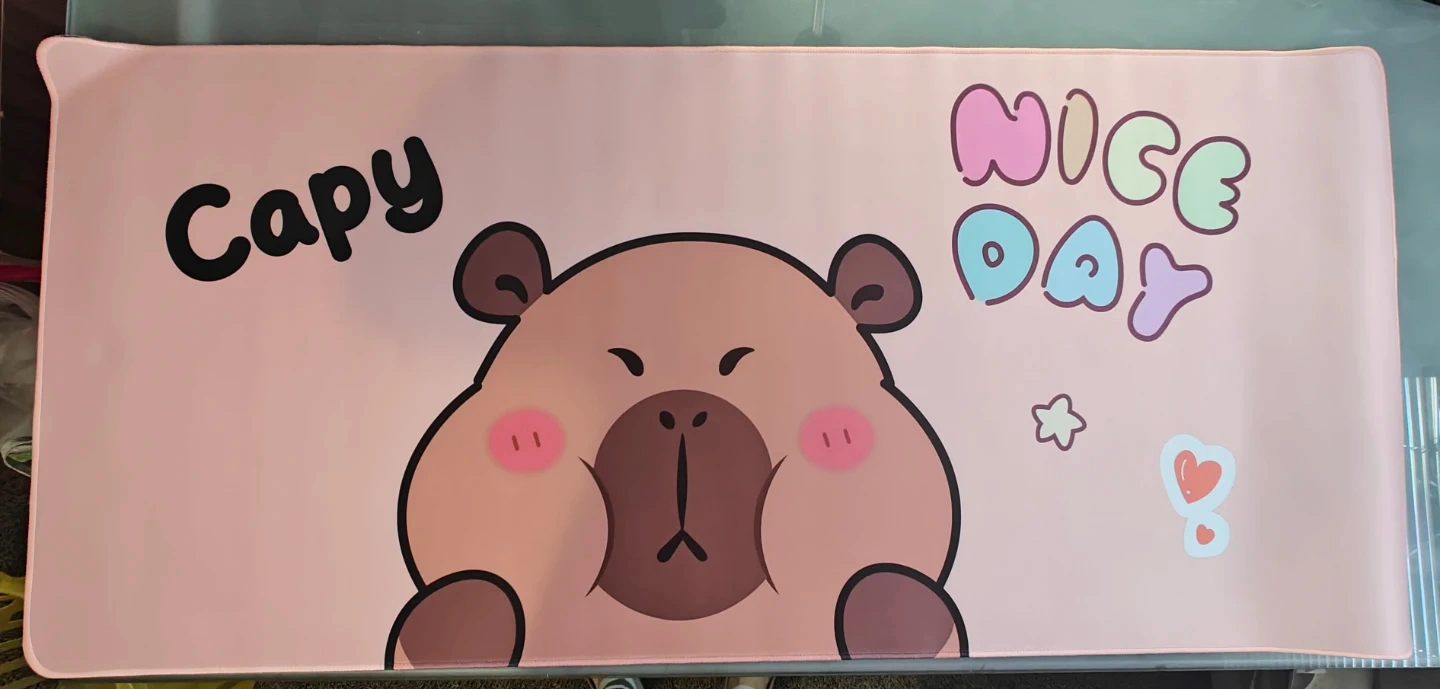 Selling a cute 'Capy' mousepad with a 'Nice Day' design! It comes with a matching wrist rest for extra comfort while you work or game. Perfect for adding a touch of fun to your desk setup.